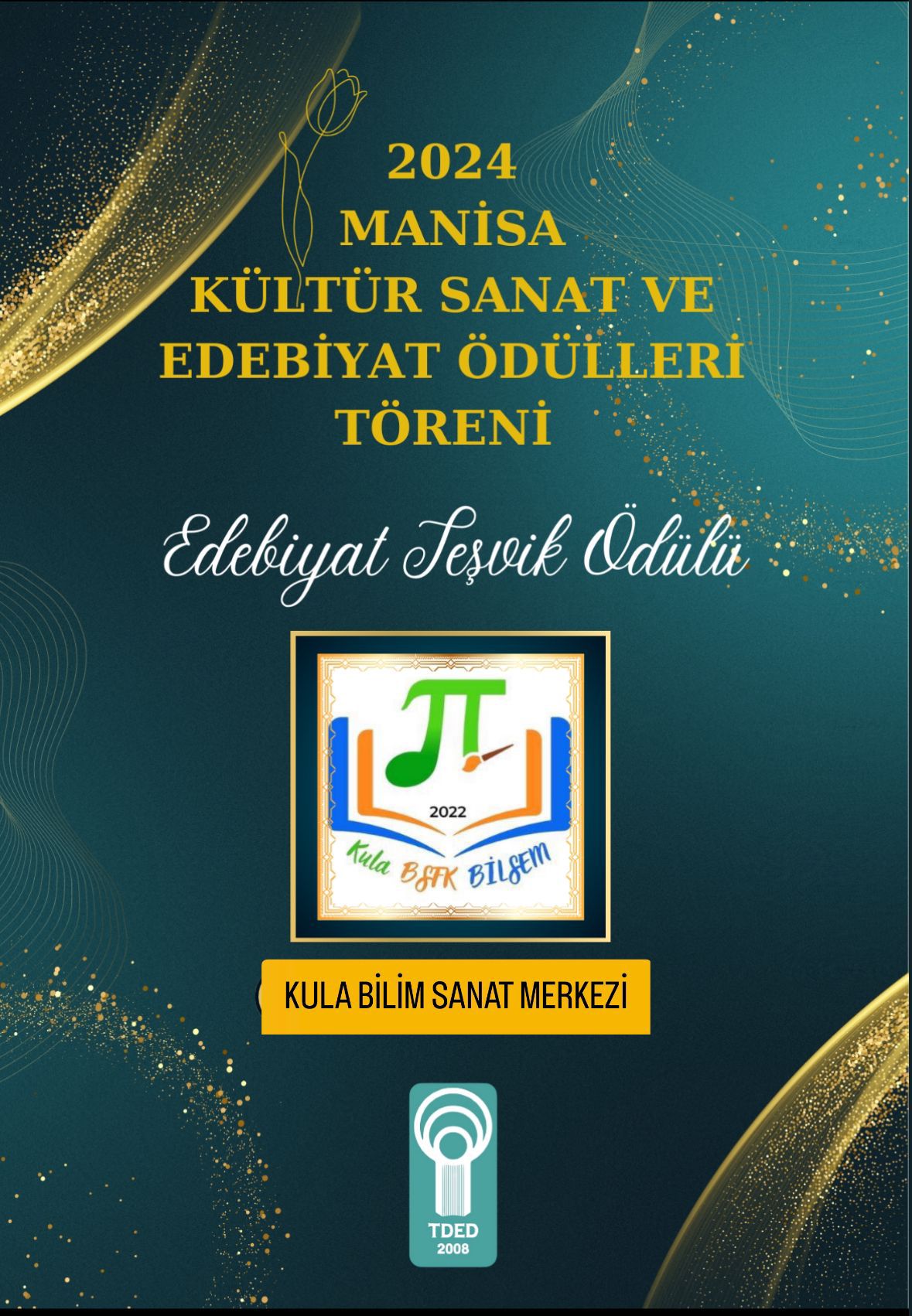 Türkiye Dil ve Edebiyat Derneği Manisa Şubesinin tarafından 31.01.2025 tarihinde Yunusemre Belediyesi Millet Çarşısı Konferans Salonunda düzenlenen “Manisa 2024 Kültür Sanat ve Edebiyat Ödülleri” töreninde Kula Bekir Sacide Filiz Keleşoğlu Bilim ve Sanat Merkez Müdürü Suphi AKSOY’un editörlüğünde 13 özel yetenekli öğrenci tarafından yazılan hikâye kitabı jüri tarafından ödüle layık görülmüştür.