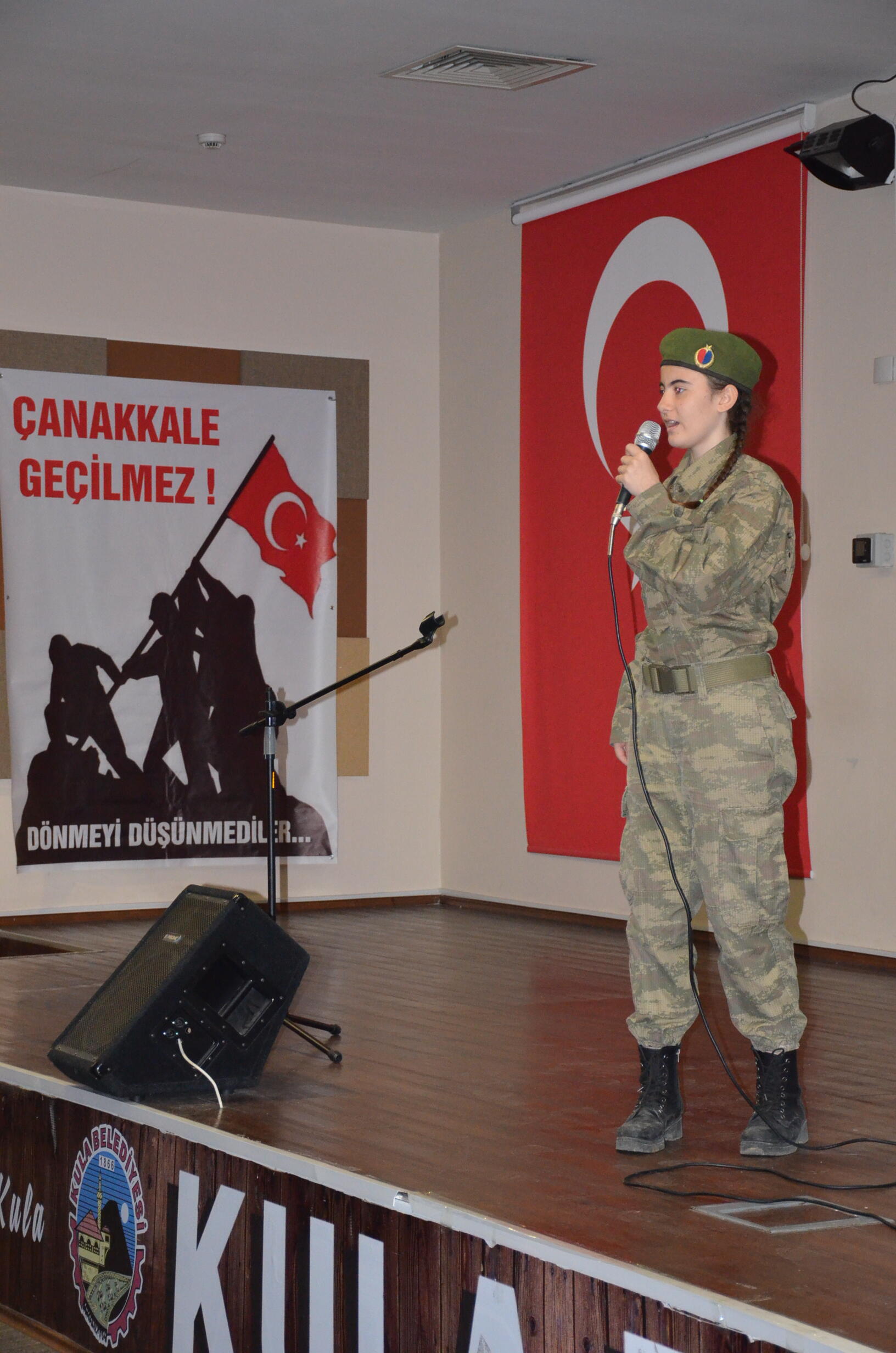 Şehitlik ziyareti sonrasında kültür merkezinde hazırlanan programda ilk olarak saygı Duruşu ve İstiklal Marşı okundu. Program da günün anlam ve önemini belirten konuşmayı Kula Kaymakamı Birkan Tatlısöz yaptı, öğrencilerin hazırlamış olduğu oratoryo, şiirler ve pandomim gösterilerinin ardından şiir ve kompozisyon yarışmalarında derece yapan öğrencilere ödülleri verildi.
