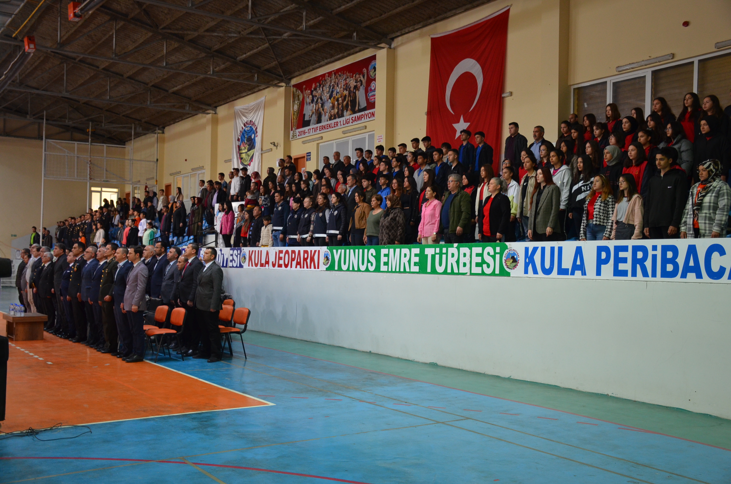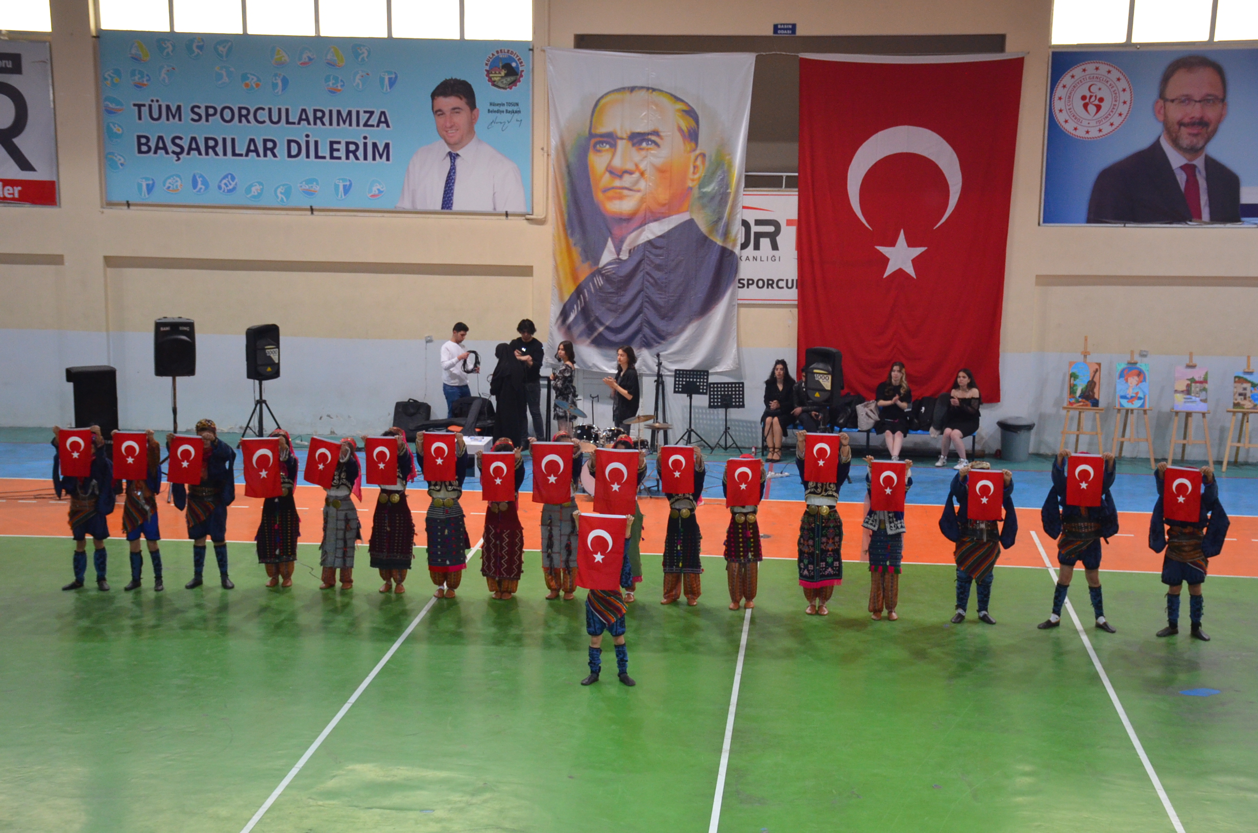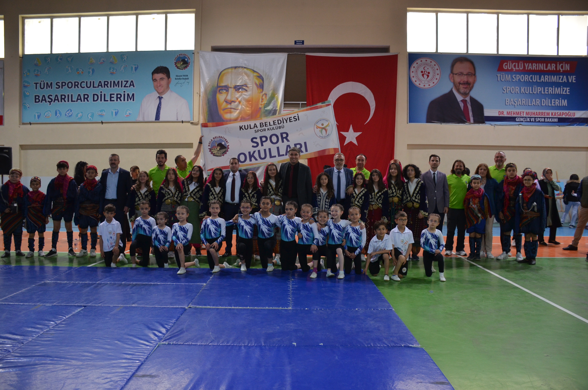 Spor Salonunda ki program Saygı Duruşu ve İstiklal marşının okunmasıyla başlarken Gençlik ve Spor Bakanı Dr. Mehmet Muharrem Kasapoğlu’nun mesajının okunmasıyla devam etti. Günün anlam ve önemini belirten konuşmayı Kula Kaymakamı Birkan Tatlısöz yaparken konuşmanın ardından Yaren ekibinin gösterisi yapıldı, gösterinin ardından Atatürk’ün gençliğe hitabesi ve Gençliğin Atatürk’e cevabı okundu, öğrencilerin hazırlamış olduğu programda müzik dinletisi, şiirlerin okunması, Kula Belediyesi Spor Kulübü jimnastik Ekibinin ve folklor ekibinin gösterileri, şiir ve kompozisyon yarışmalarında derece yapan öğrencilere ödüllerinin verilmesiyle program son buldu.