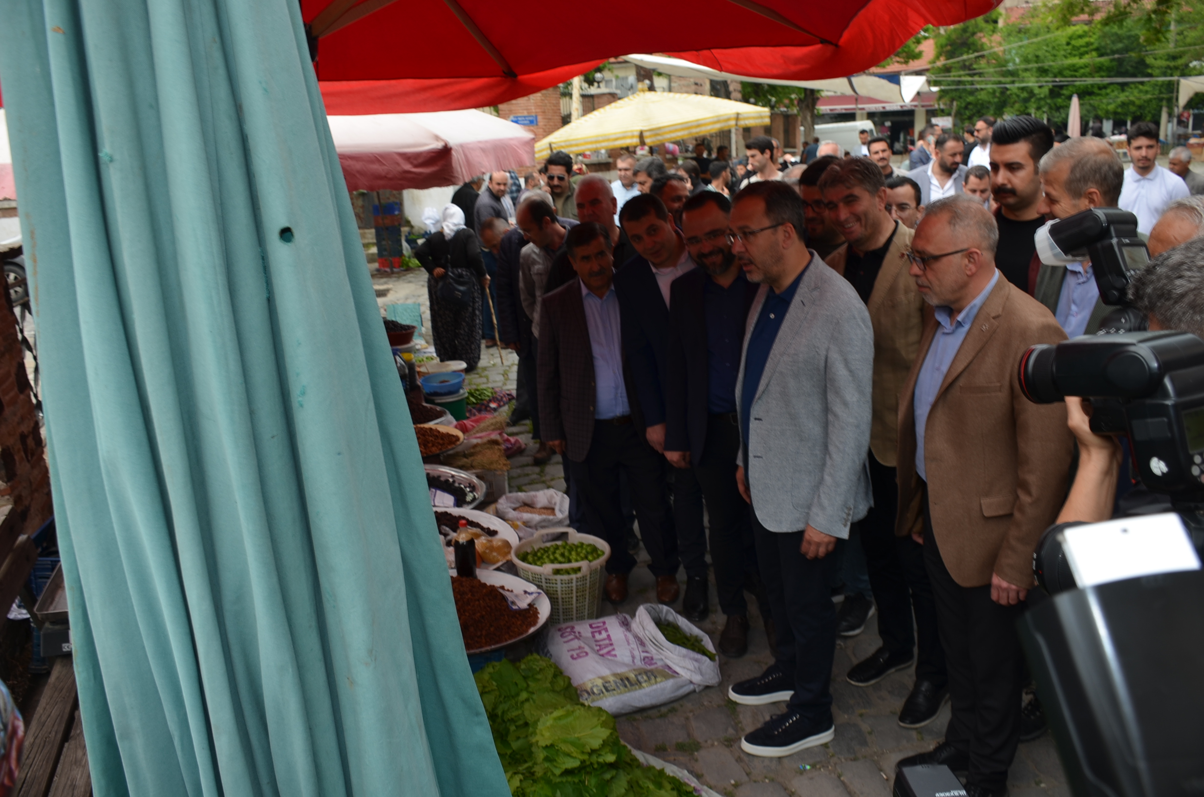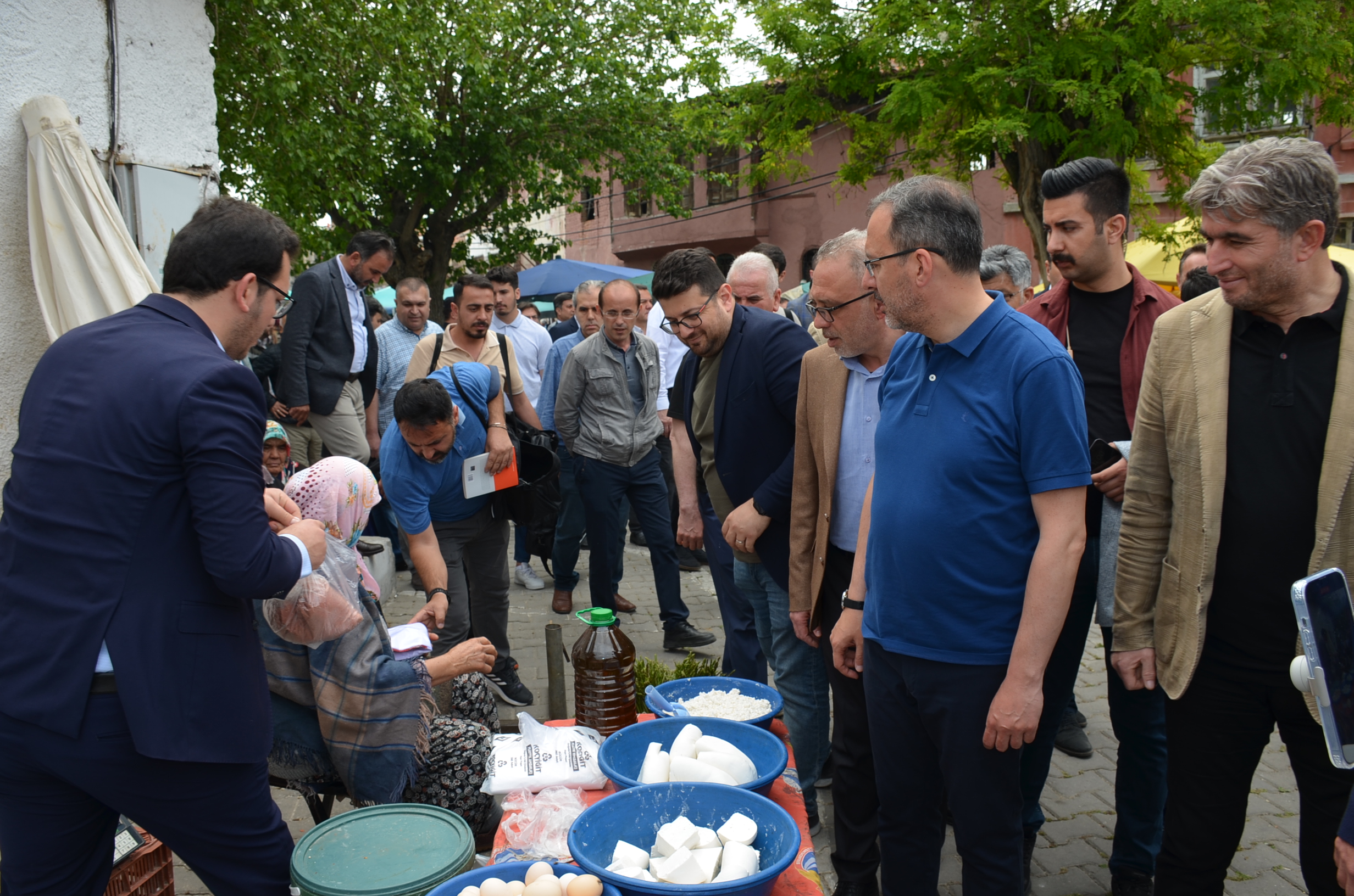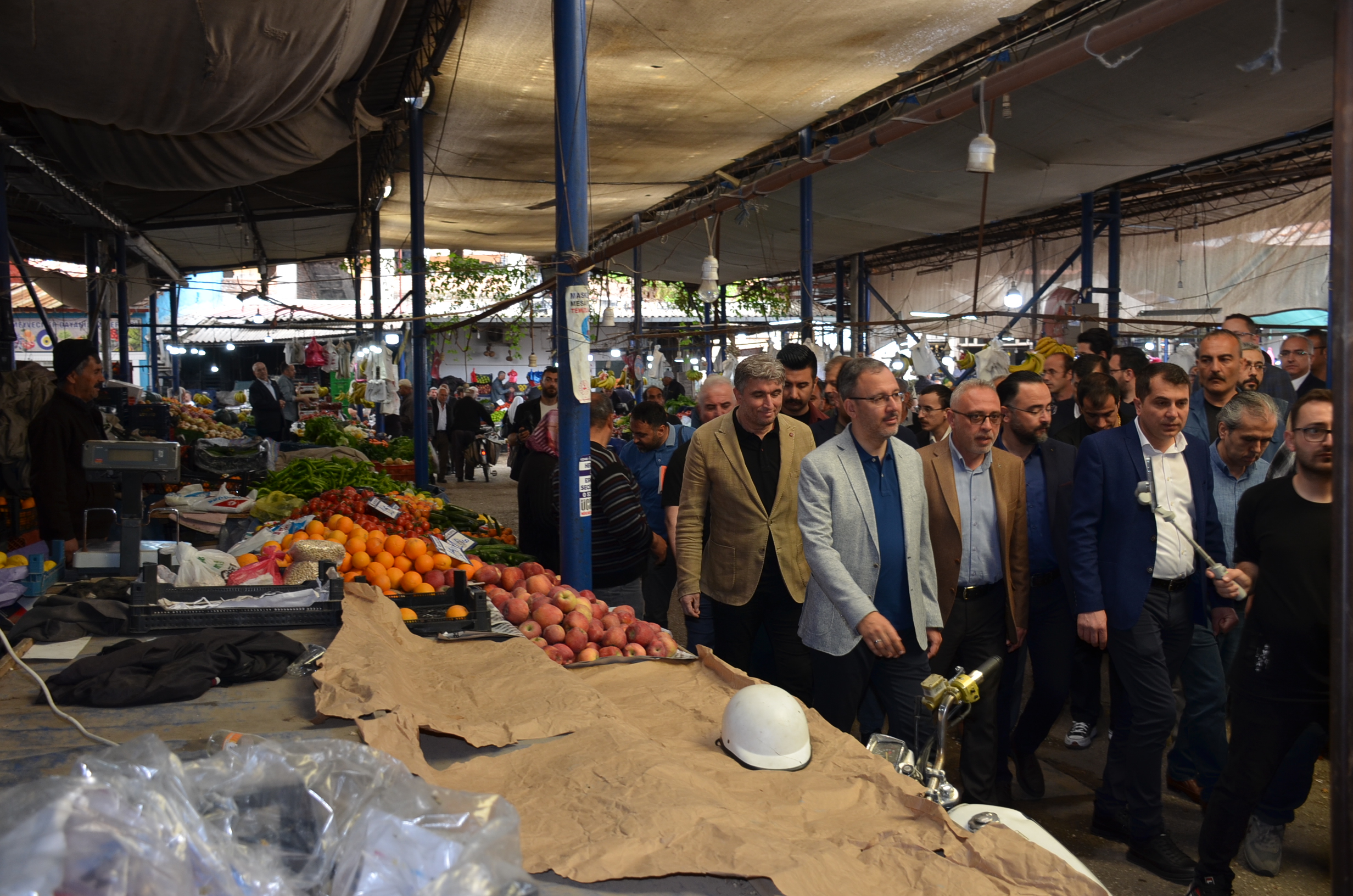 Pazar yeri esnafını ziyaret eden Kasapoğlu esnaflara hayırlı işler dileyerek esnaflarla bir süre sohbet etti ve desteklerini istedi.
