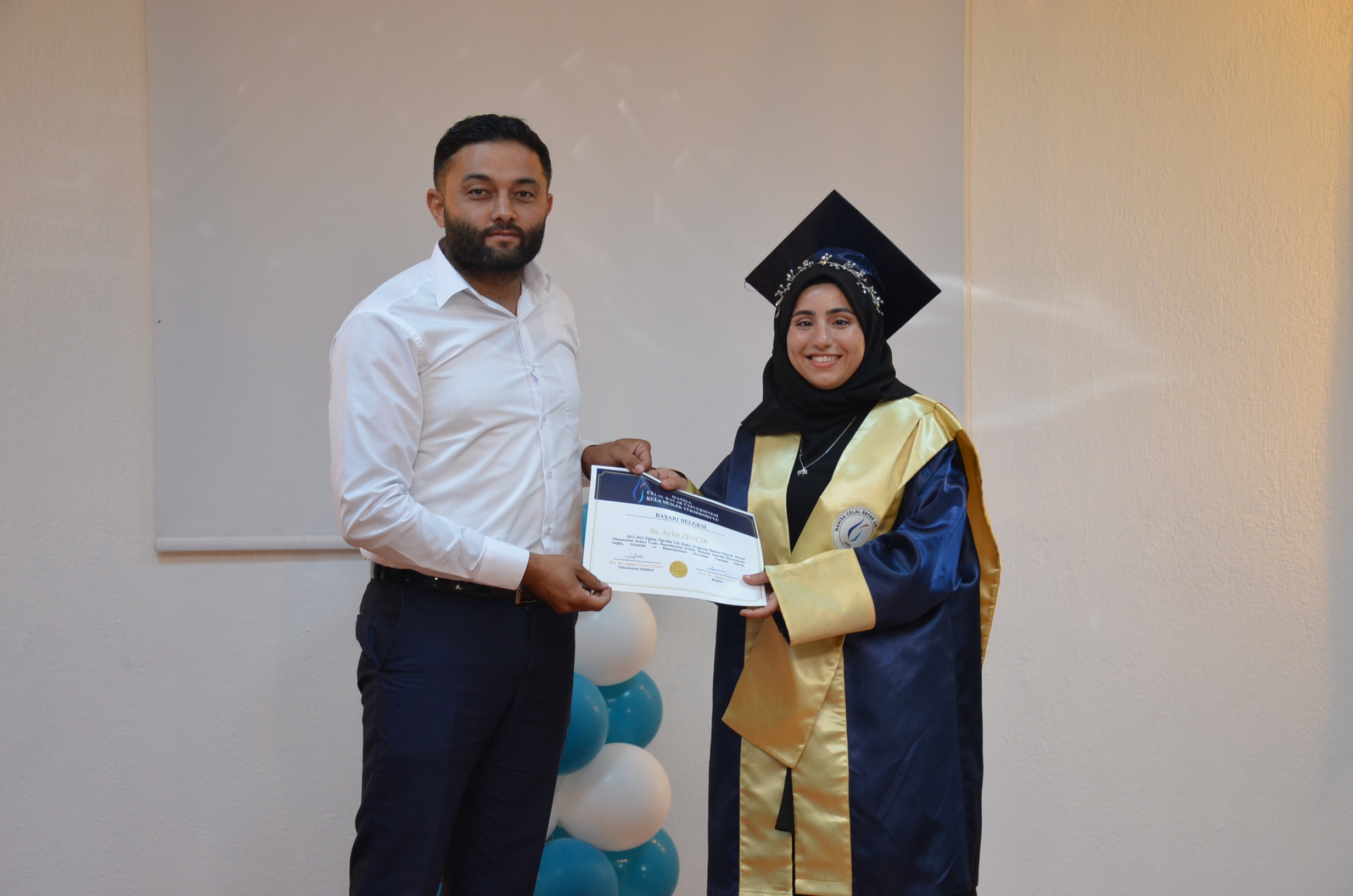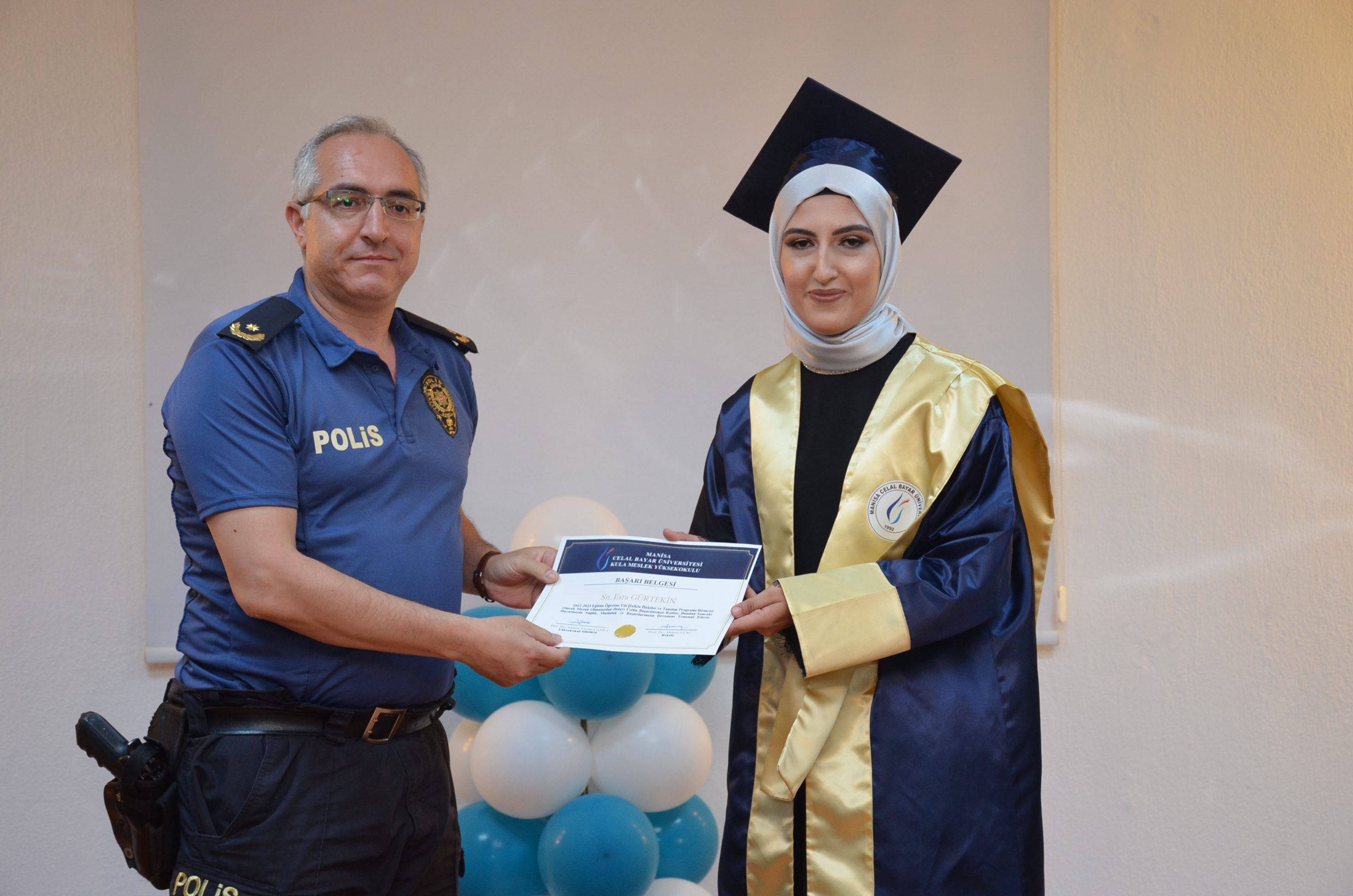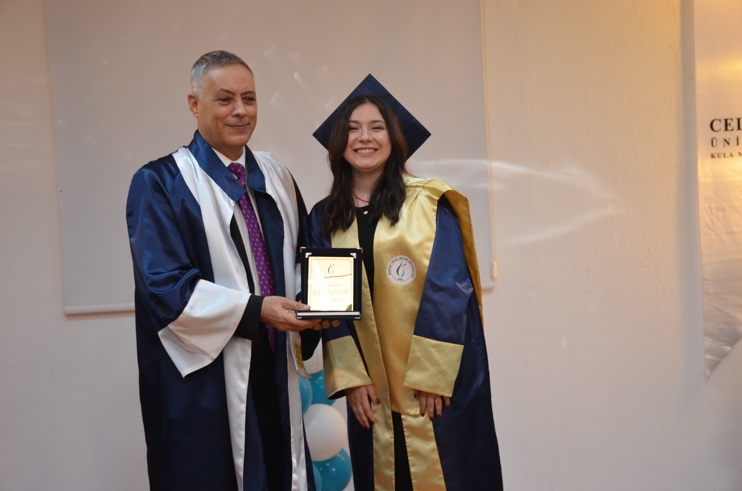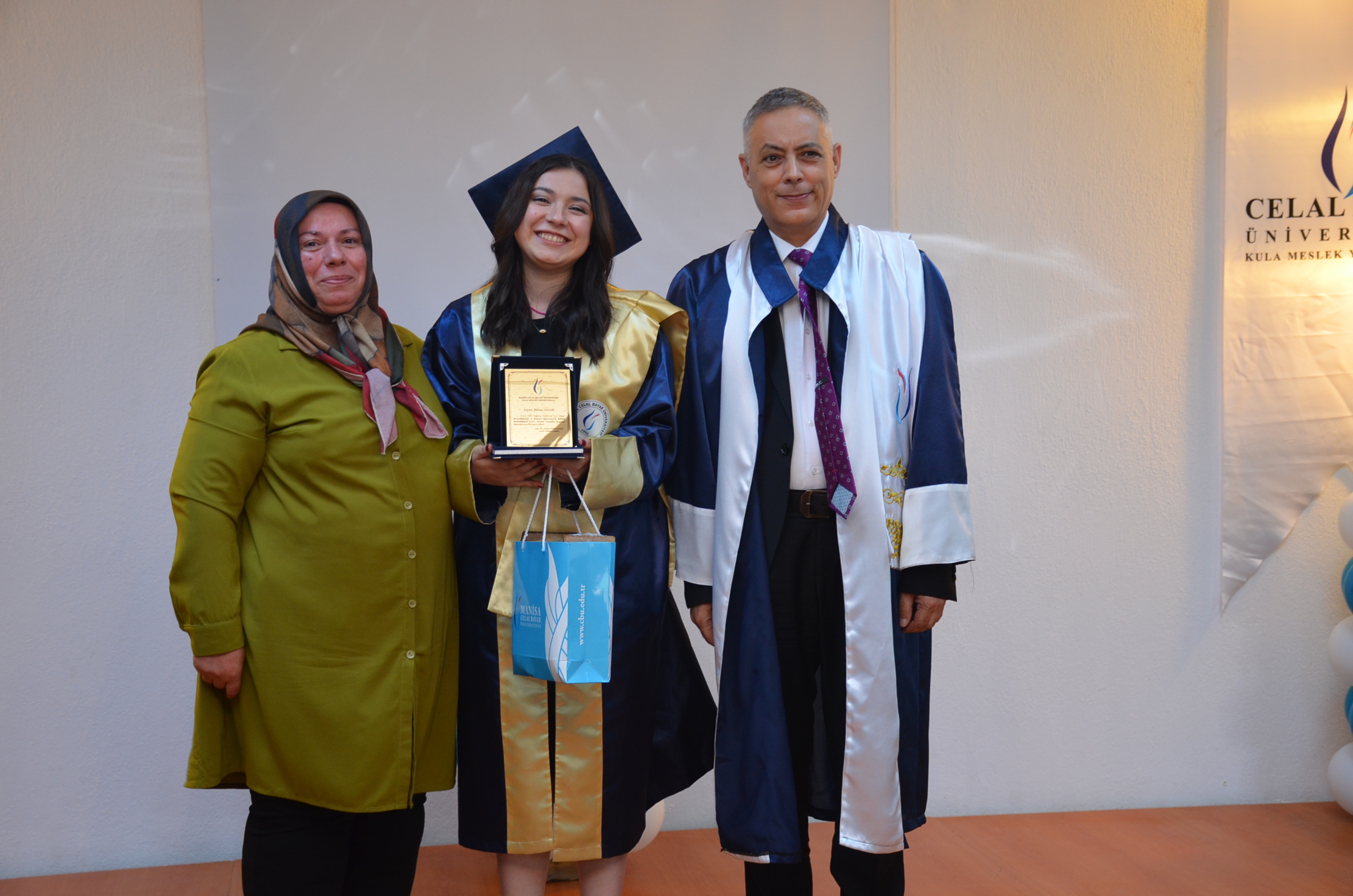 Kula Belediyesi ile Manisa Celal Bayar Üniversitesi Kula Meslek Yüksekokulu arasında yapılan işbirliği çerçevesinde bu güne kadar göstermiş olduğu özverili çalışmaları ve Kula’ya katmış oldukları değerlerden dolayı teşekkür eden Kula Belediyesi Başkan Vekili Nejat Gülmez, Meslek Yüksekokulu Müdürü Doç. Dr. Ahmet Yavuz ÇAMLI ve Meslek Yüksekokulu sekreter vekili Hasan Ali ŞAHİN’e teşekkür plaketleri verdi. Daha sonra tüm öğrencilere başarı belgeleri verilirken, okul birincisi Berna ARIK’ın mezuniyet andını okumasının ardından kep atımı ile tören sonlandı.