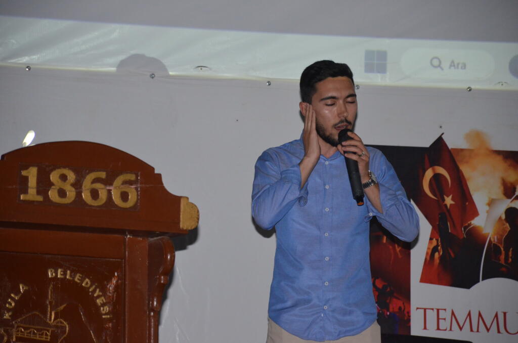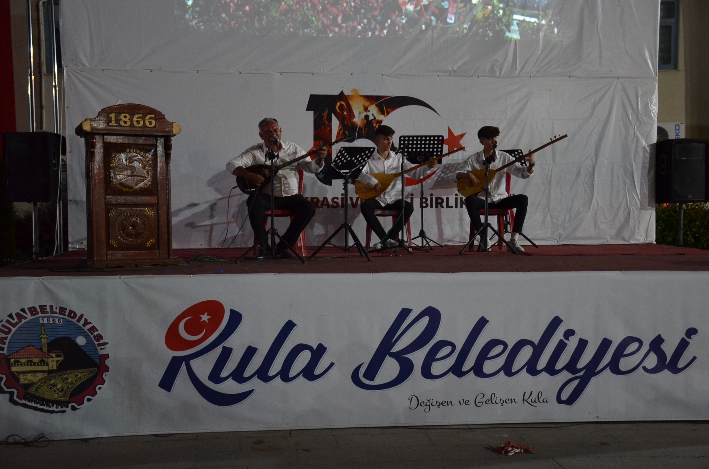 15 Temmuz Demokrasi ve Milli Birlik günü 7. Anma programları kapsamında Kula’da anma programları Süleyman Şah caminde akşam namazının kılınması mutabıkken mevlidi şerif ile devam etti. Akşam namazının ardından mehteran takımı ile Süleyman Şah caminden Kula Kent Meydanına konvoy halinde yürüyüş yapıldı. Kula Kent Meydanındaki program Mehteran takımının gösterileriyle devam etti.