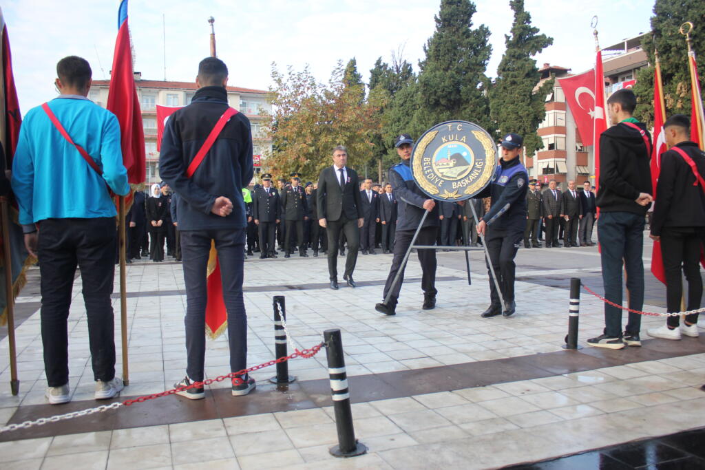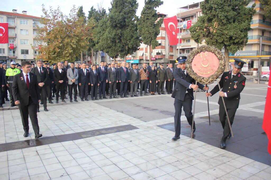 Kula Kent Meydanında bulunan Atatürk anıtı önünde başlayan anma programı ilk anıta Kula Kaymakamlığı ve Kula Belediye Başkanlığının çelenklerinin sunumuyla başladı. Saatler 09:05’i gösterdiğinde saygı duruşu ve İstiklal Marşımızın okunmasıyla Atatürk anıtı önünde program son buldu.