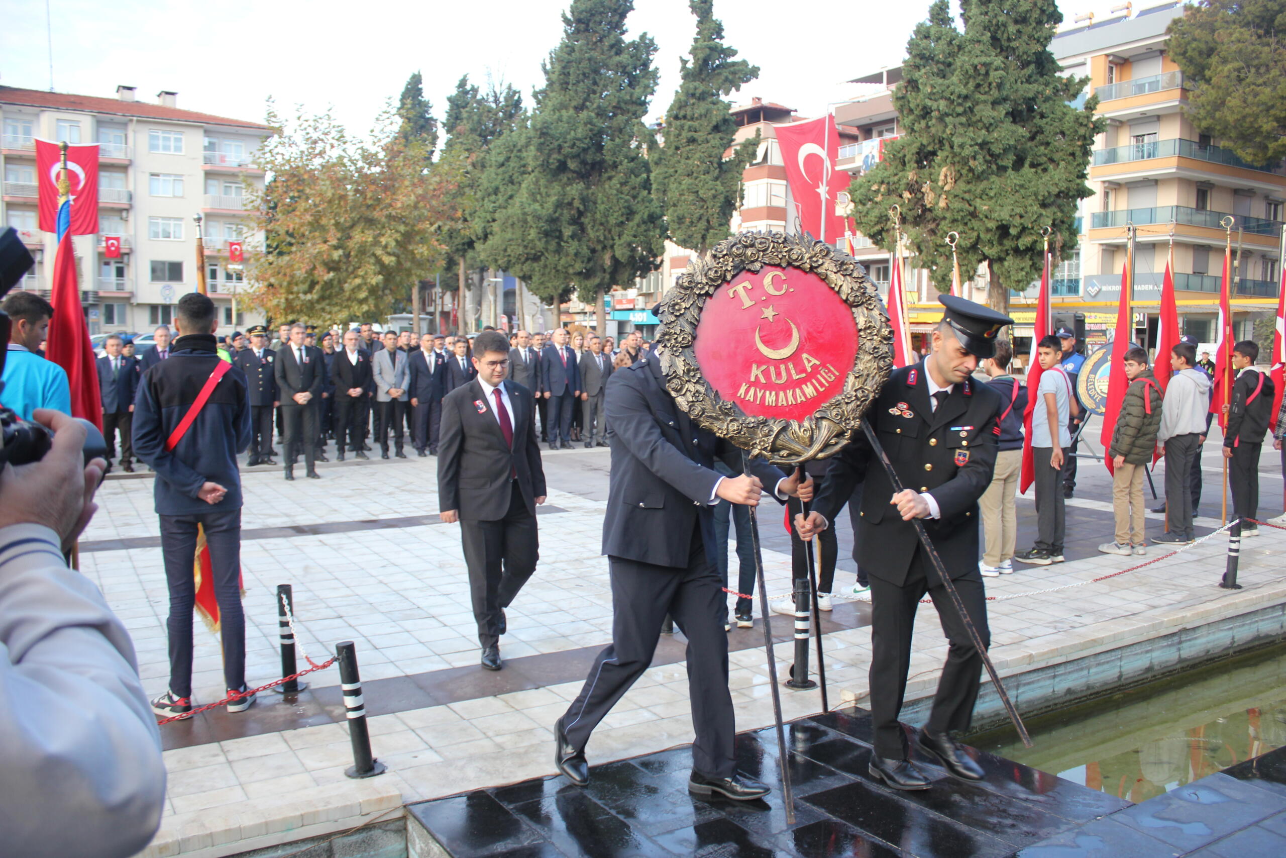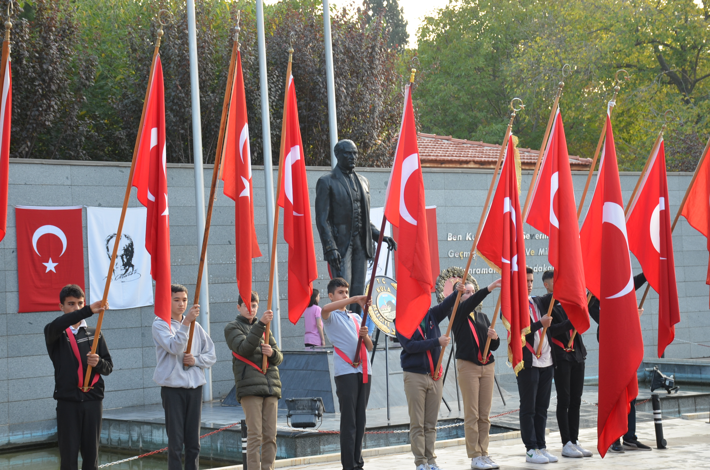 Kula Kent Meydanında bulunan Atatürk anıtı önünde başlayan anma programı ilk anıta Kula Kaymakamlığı ve Kula Belediye Başkanlığının çelenklerinin sunumuyla başladı. Saatler 09:05’i gösterdiğinde saygı duruşu ve İstiklal Marşımızın okunmasıyla Atatürk anıtı önünde program son buldu.