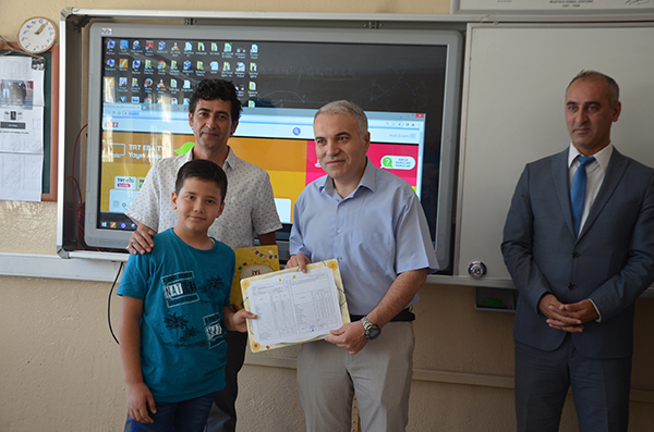 Kula Mehmet Hüseyin Tosun İlkokulunda gerçekleştirilen karne dağıtım programında Kaymakam Kemal Duru öğrencilere karnelerini verdi. Öğrencilerle bir süre sohbet eden Kaymakam Kemal Duru yaz tatilinde öğrencilere bol bol kitap okumaları gerektiğini söyledi.