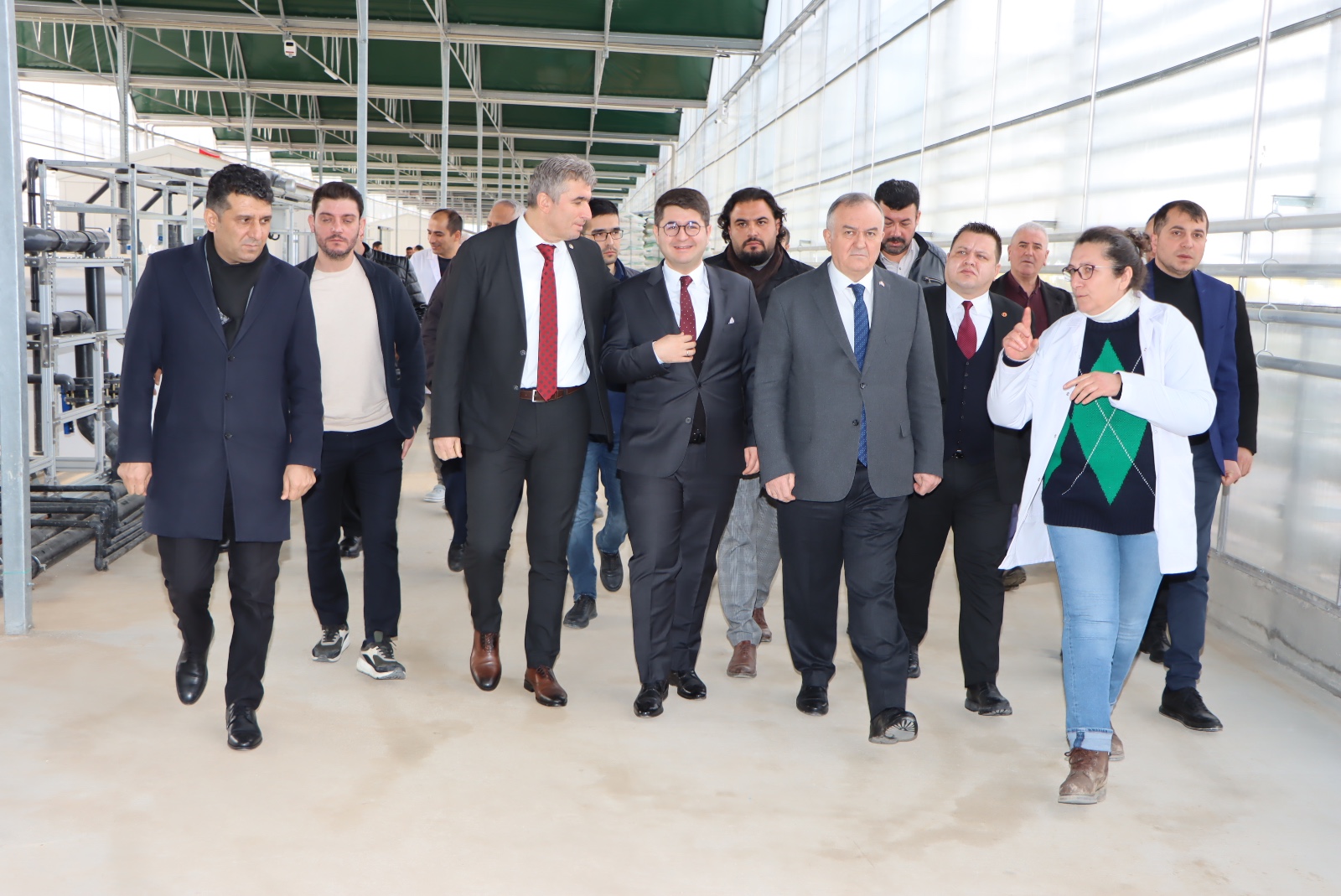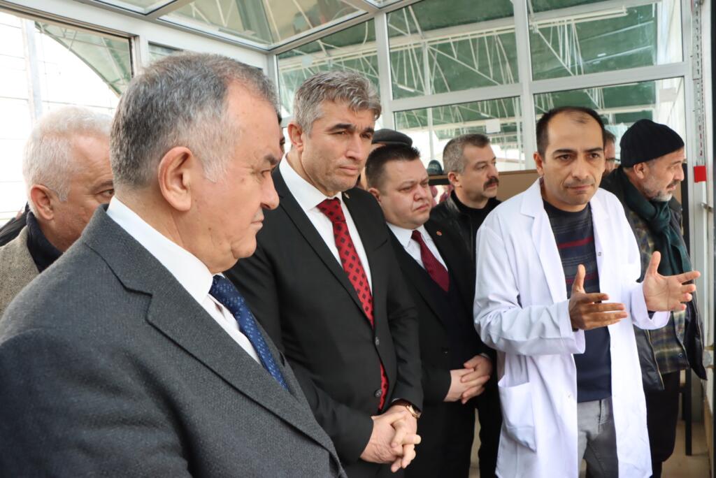 MHP Gurup Başkan Vekili Akçay’a bilgi veren Kula Belediye Başkanı Hüseyin Tosun, 50 bin metrekare jeotermal serada mevcut jeotermal kaynakların kullanılarak üretimin başladığını söyledi.