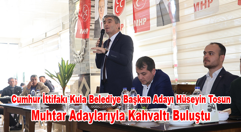 Cumhur İttifakı Kula Belediye Başkan Adayı Hüseyin Tosun, Kula’nın 7 merkez, 53 kırsal toplamda 60 mahallesinin mevut muhtarları ve adaylığını kamuoyuna duyuran muhtar adaylarıyla kahvaltıda bir araya gelerek Muhtar adayları İstiaşare toplantısı gerçekleştirdi.