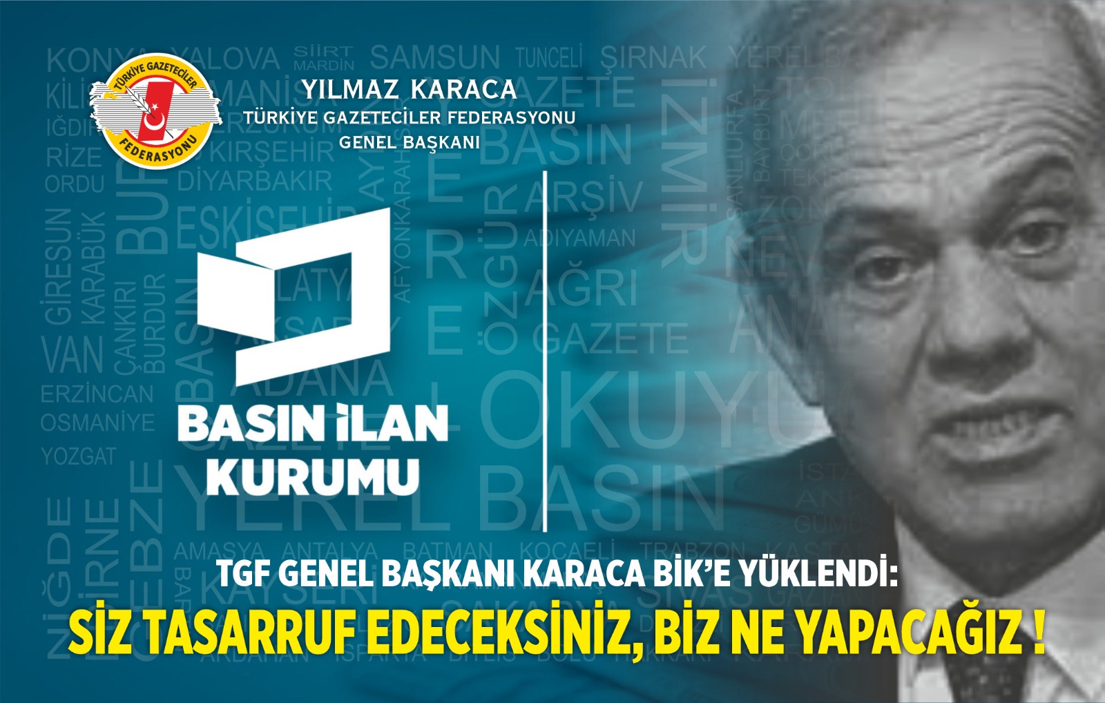 Tasarruf tedbirleri kapsamında 13 ildeki şubelerini kapatan Basın İlan Kurumu (BİK), gazeteleri ve gazetecileri zora sokmaya devam ediyor. TGF Genel Başkanı Karaca; siz tasarruf edeceksiniz, biz ne yapacağız dedi.