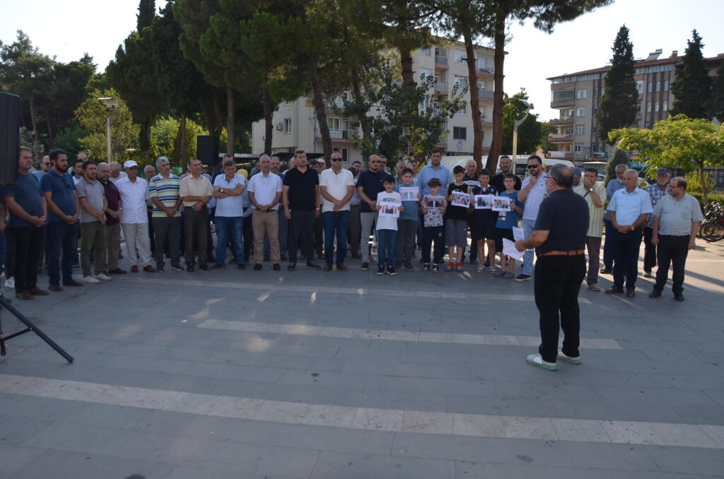 SÖNMEZ, “İsmail Haniye, 3 oğlunu 4 torununun şehadet haberini alınca, davasını çelik bir iradeye, acısını sabra dönüştüren ’Benim çocuklarımın kanı Filistin halkının kanından daha değerli değildir. Gazze’deki tüm çocuklar benim çocuklarımdır’ diyen, iman iddiasını mücadele, özgür Kudüs aşkını şehadetiyle ispat eden Fillisindeki binlerce mücahitten biriydi. ’Allah yolunda öldürülenlere ölüler demeyin! Onlar diridirler’ diyor ya Rabbimiz, bizler de işittik ve itaat ettik diyoruz. Onlar mücadele ruhunu diri tutan, davalarını direnişe dönüştüren, nesillere çağlara güzel bir çağrı ve örneklik bırakan önderlerdir. ’Madem ölüm tek bir defa gelecek o da neden Allah için olmasın?’ inancıyla hakka yürüyen bu yiğidimizin, davasının hak olduğuna nasıl iman ediyorsak, onun yasını tutarken de yaşarken ki şahitliğine tanıklık ediyor, Rabbimizin şehadetini kabul etmesini niyaz ediyoruz. Tüm Filistin halkının başı sağ olsun, tüm Müslümanların başı sağ olsun, yeryüzünün tüm vicdanlı insanları İsrail terör örgütünün alçaklığına, korkaklığına, azgınlığına tanık olsun. 40 bin masum mazlum şehidin kanı 100 bin gazinin acısı dünyanın merhametine, insanlığın uyanışına, zulümlerin son bulmasına vesile olmuyorsa veyl olsun. Kundaklara dolan kanların, torbalarda taşınan cesetlerin, paramparça edilmiş bedenlerin, dökülen masum kanlarının hesabı sorulmayacaksa tüm insanlığa veyl olsun. Katil İsrail’in alçakça saldırılılarına, korkakça suikastlarına, hadsiz tehditlerine arka çıkan, bölgemizi kan gölüne çevirmeye ahdetmiş arz-ı mevud zırvalıklarına para saçanlar, lobilerine yardım yataklık eden, meclisinden Gazze kasabı aşağılık katil Netenyahu’yu alkışlayan katil ABD Orta Doğu’dan defolup gitmedikçe, ne Orta Doğu ne ülkemiz ne de dünya güvende olacak.” diye konuştu.