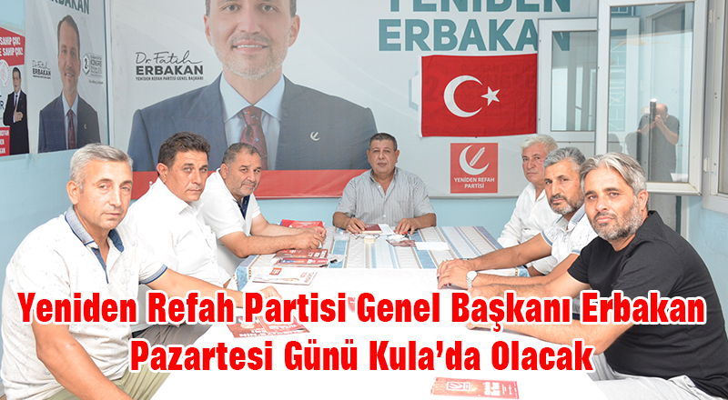 Yeniden Refah Partisi Genel Başkanı Dr. Fatih Erbakan Manisa ve İlçe ziyaretleri kapsamında Kula’tı ziyaret ederek esnaf ziyareti ve Pazar yeri ziyareti yaparak vatandaşlarla buluşacak.