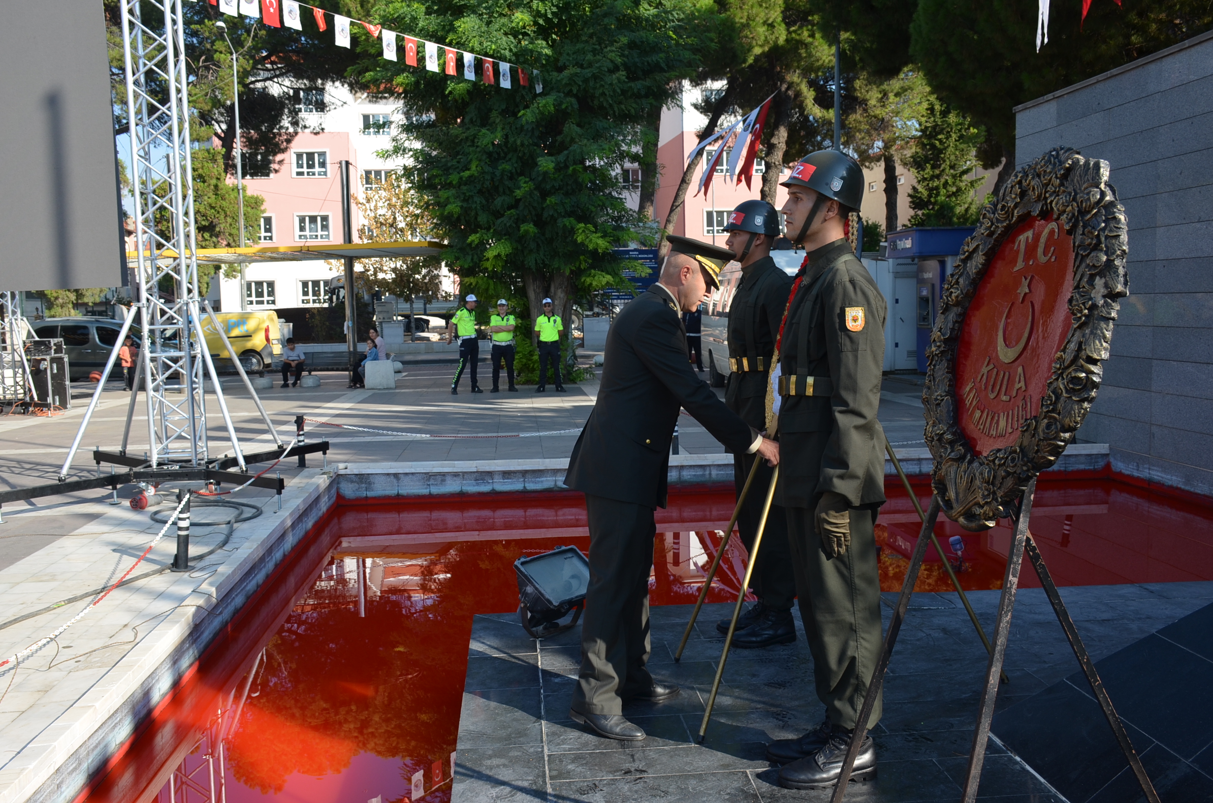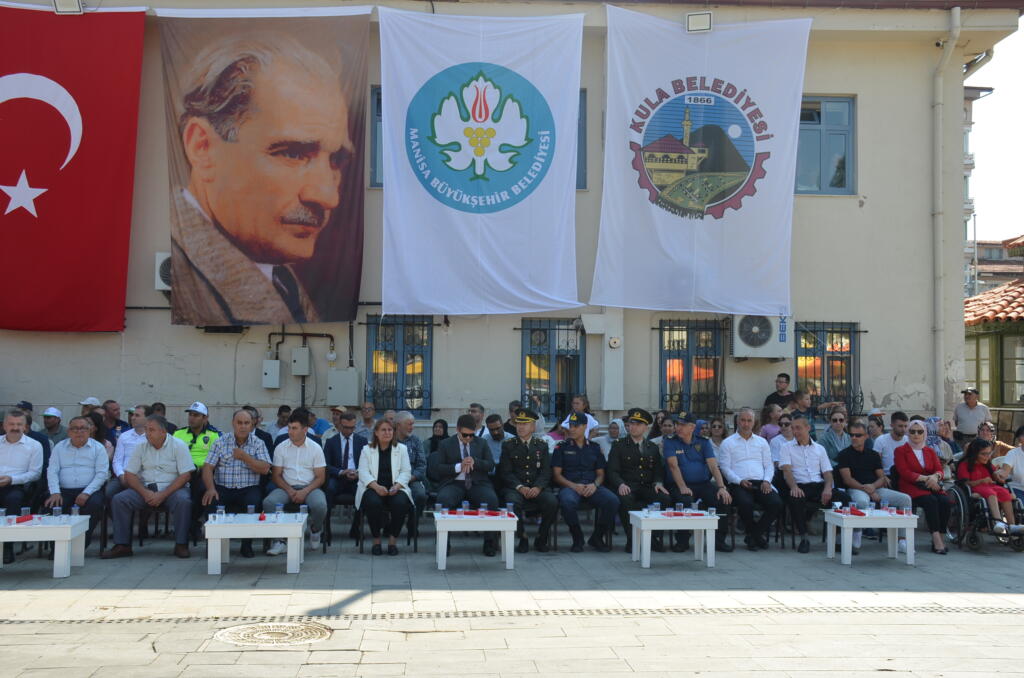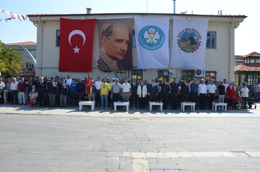 Program ilk olarak Kula Kent Meydanında Atatürk anıtına Kaymakamlık ve Belediye Başkanlığının çelenklerin sunulmasıyla başladı, Saygı duruşu ve İstiklal Marşının okunmasın dan sonra, Kula Şehitliği ziyaret edildi Şehitlikte Kuran tilaveti ve dualar okundu.