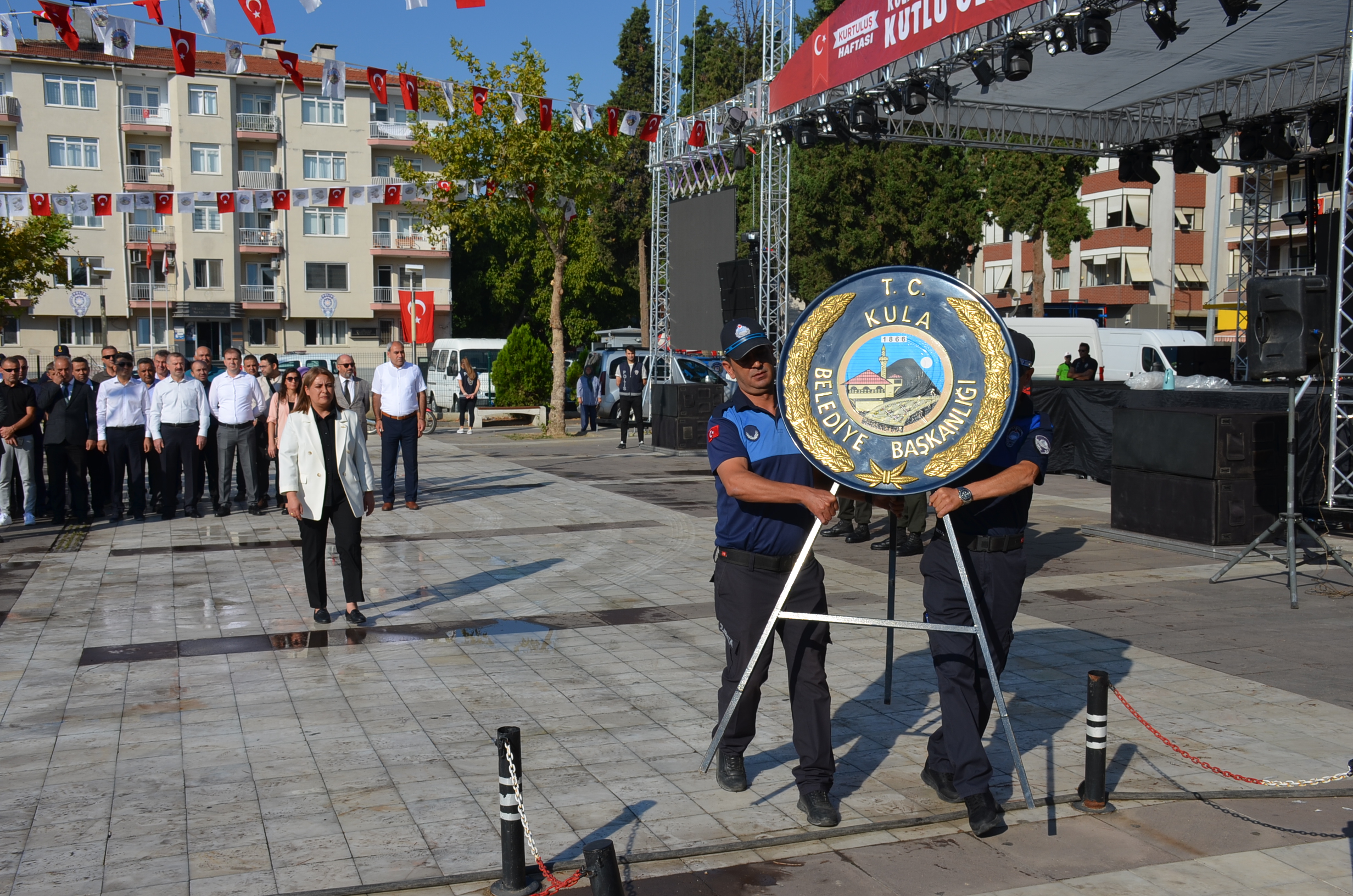 Kula’nın düşman işgalinden kurtuluşunun 102. yıl dönümü kutlama programına; Kula Kaymakamı Ömer Ahmet Özdemir, Belediye Başkan Vekili Semra Gündüz, kamu kurum müdürleri, gaziler, daire amirleri, kolluk kuvvetleri, sivil toplum kuruluş başkanları, siyasi parti temsilcileri, okul müdürleri, öğretmenler, öğrenciler ve çok sayıda vatandaş katıldı.