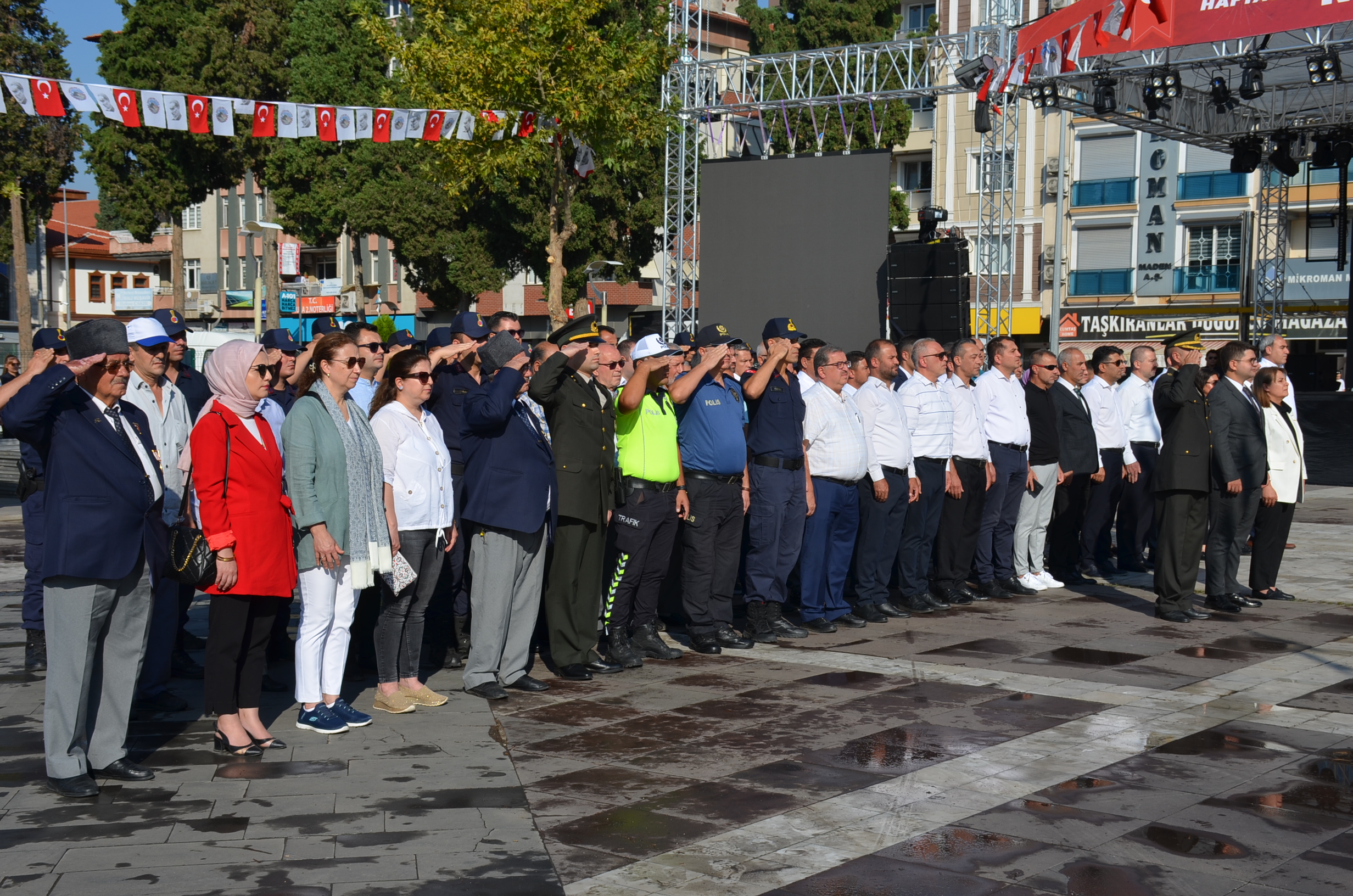 Protokol Şehitlik ziyaretinin ardından, Hisar Kapı kavşağında bir araya geldi, Kula Protokolü, Kula Avcılar ve Atıcılar Derneği Üyeleri, Atlı Cirit Ekipleri öğrenciler ve vatandaşlar birlikte yürüyüş yaparak Kula Kent Meydanında ki programa katıldılar.