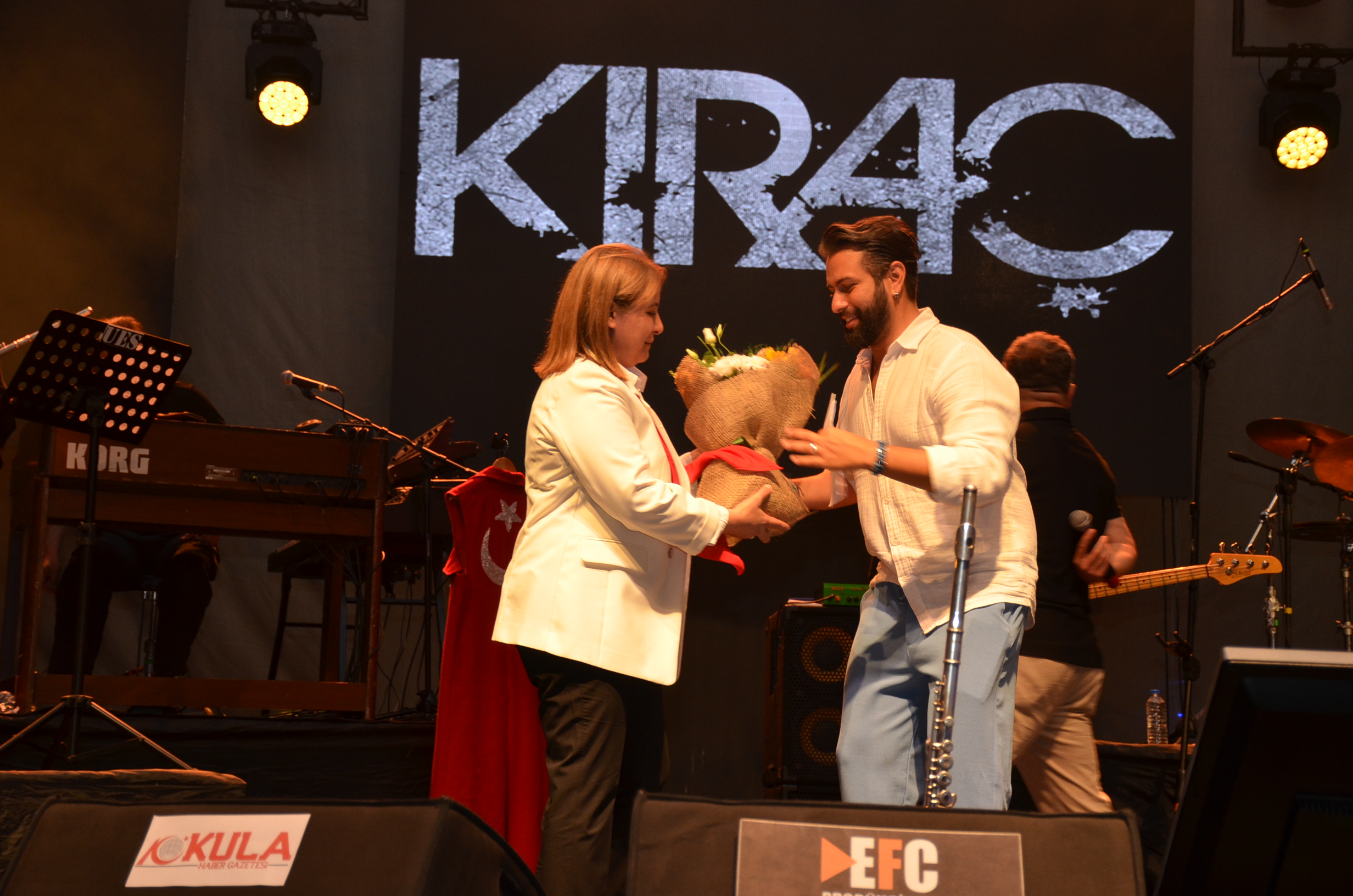Birbirinden güzel eserler seslendiren Kıraç’a katılımcılarda eşlik etti. Kula Belediyesi Başkan Vekili Semra Gündüz konserin son bulmasıyla sanatçı Kıraç’a çiçek ve maket Kula Evi hediye etti.
