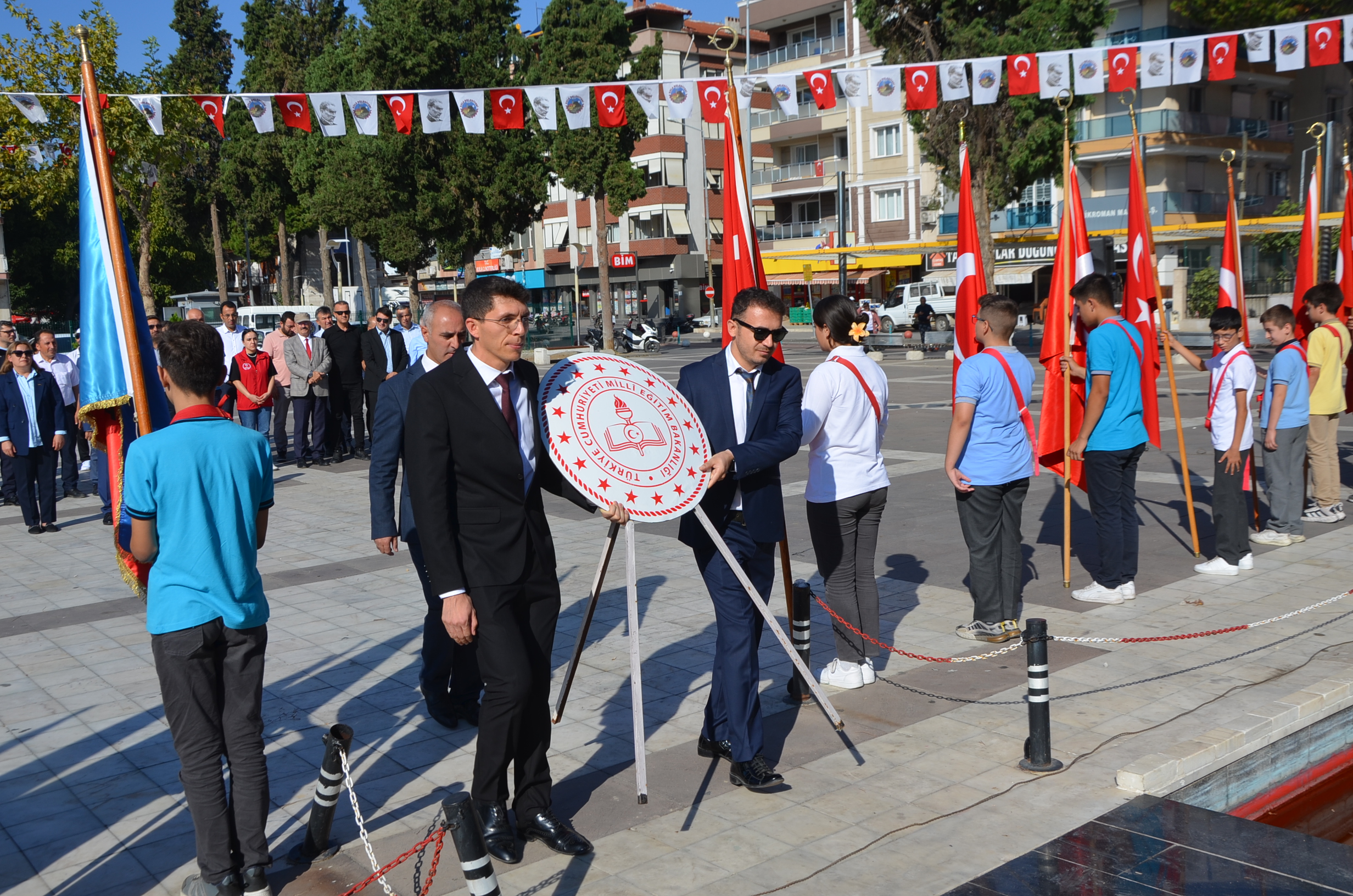 Çelen sunma töreninde Kula İlçe Milli Eğitim Müdürlüğü çelengi sunulurken saygı duruşu ve İstiklal marşı okundu. Törene Kula Belediye Başkan Vekili Semra Gündüz, Kula İlçe Milli Eğitim Müdürü Zakir Okulmuş, öğretmenler ve öğrenciler katıldı.