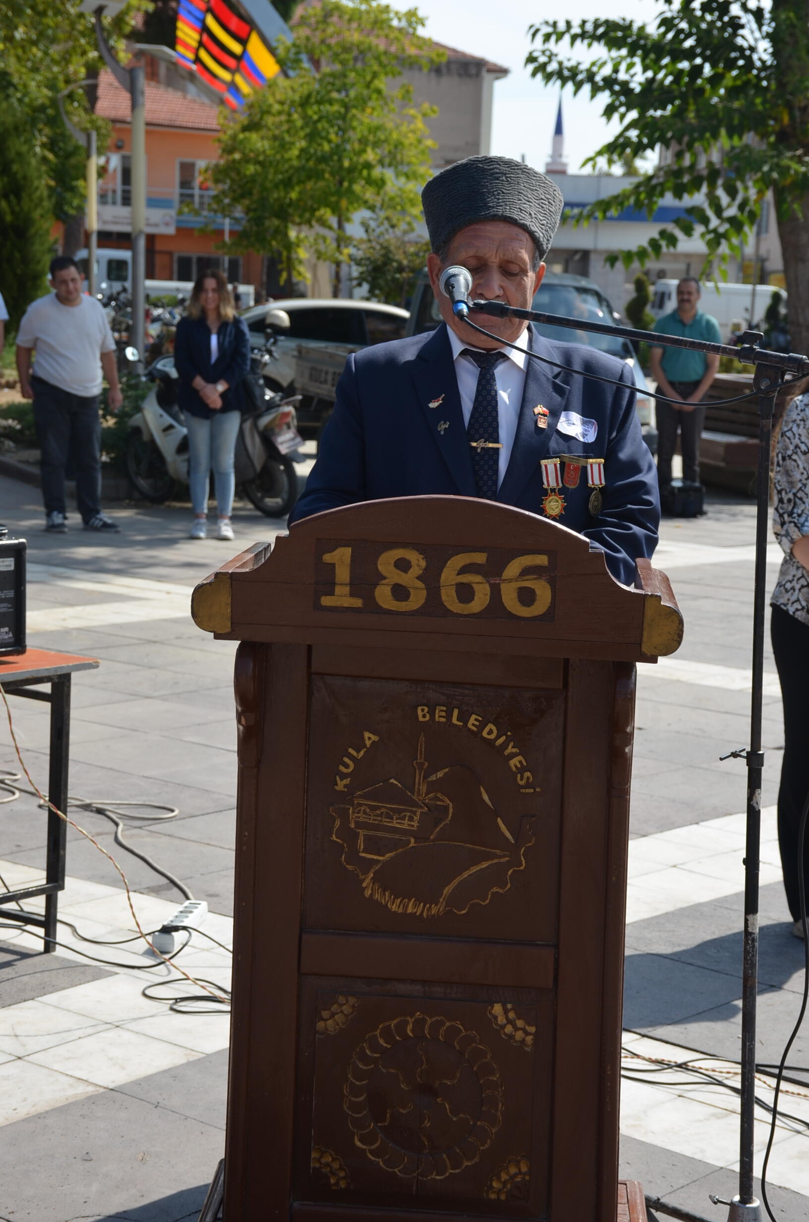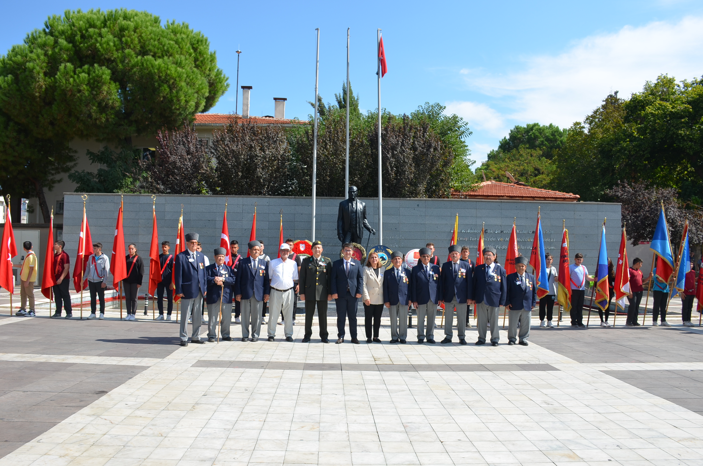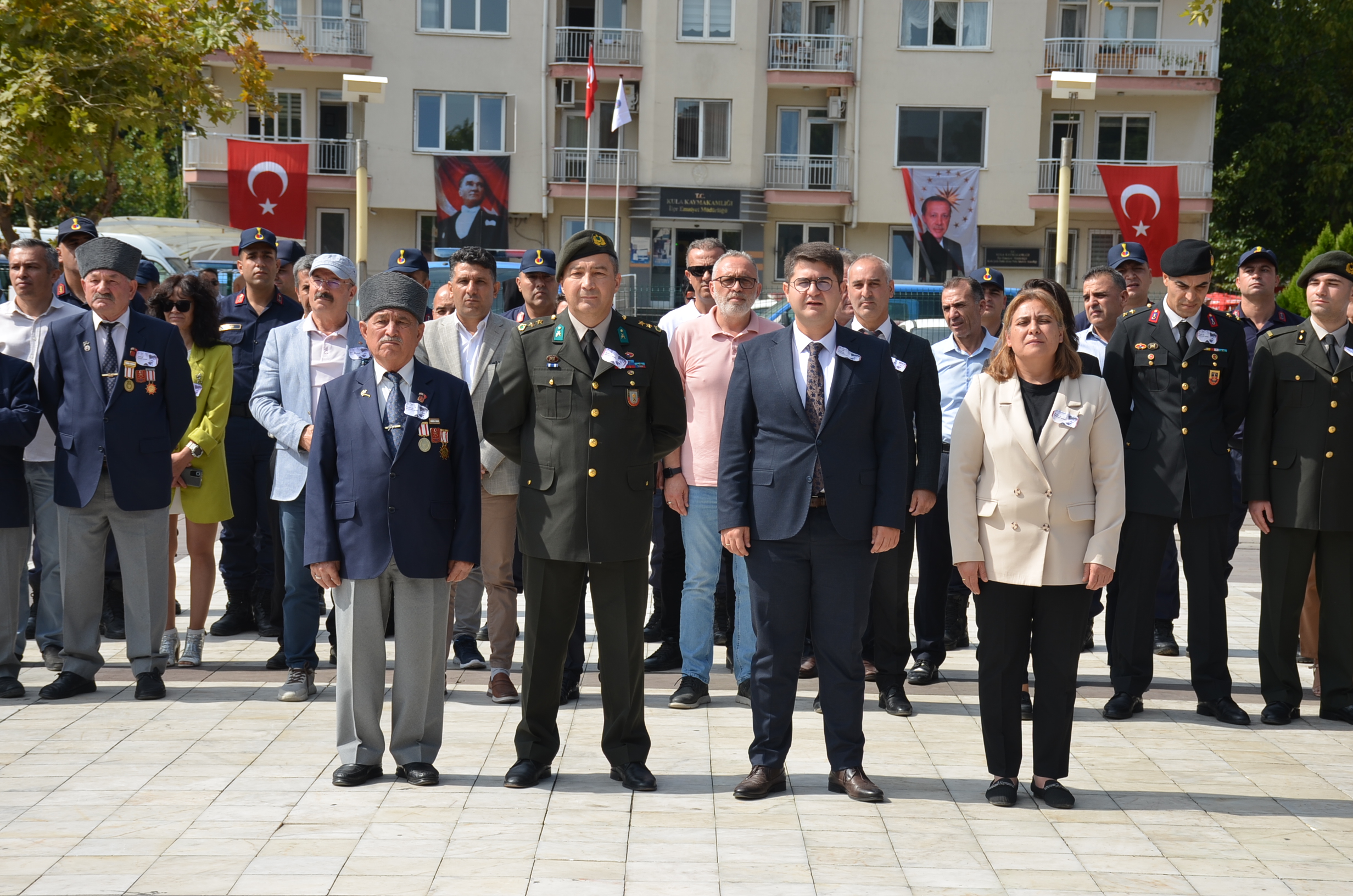 Programa Kula Kaymakamı Ömer Ahmet Özdemir, Garmizon Komutanlığı adına Yarbay Ahmet Şentürk, Kula Belediye Başkan Vekili Semra Gündüz, gaziler, kamu kurum müdürleri, daire amirleri, siyasi parti temsilcileri, okul müdürleri, öğretmenler ve öğrenciler katıldı.