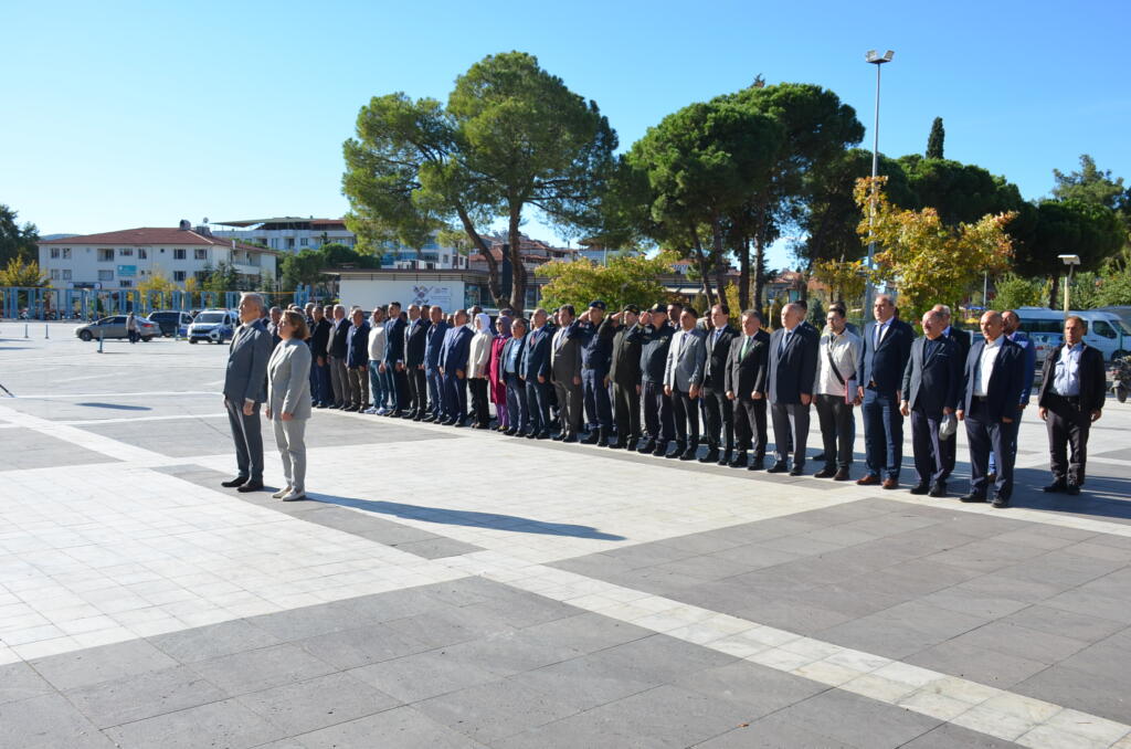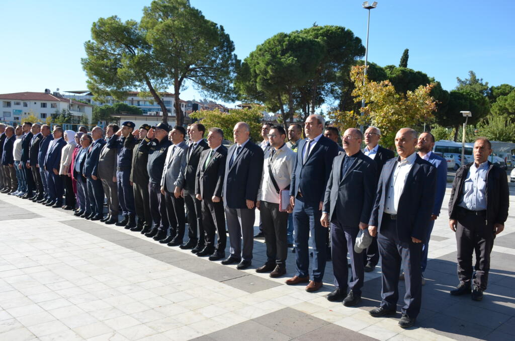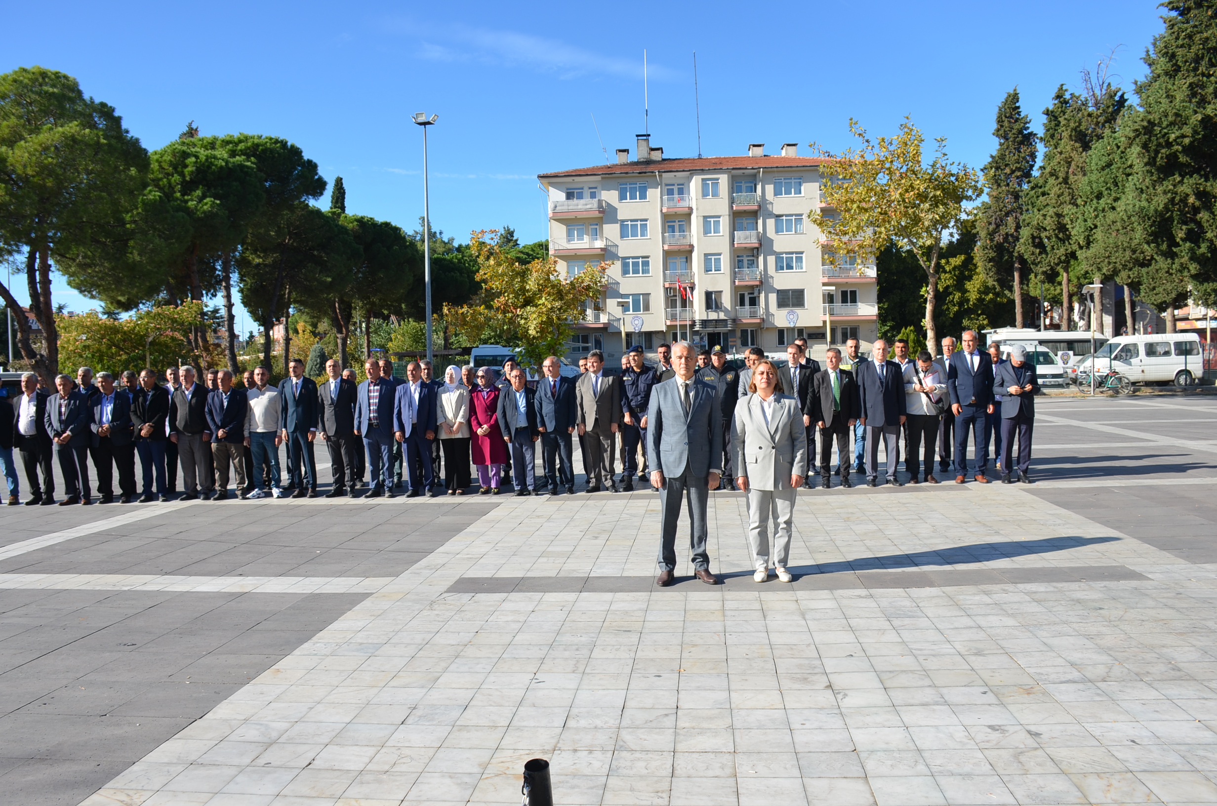 Program ilk olarak Muhtarlar Derneği çelenginin Atatürk Anıtına sunulmasıyla başlarken saygı duruşu ve İstiklal Marşının okunmasıyla devam etti. Muhtarlar Derneği Başkanı 4 Eylül Mahallesi Muhtarı Mehmet Yavuz günün anlam ve önemini belirten konuşmasını yaptı.