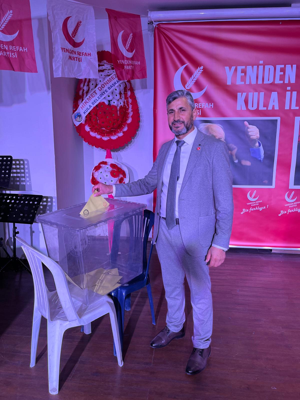 Yeniden Refah Partisi Kula İlçe Olağan ilçe kongresi yapıldı. Yapılan seçimli olağan kongrede tek aday olan Adem Çınar’ın listesi seçildi. Kula Kent meydanında bulunan Kültür merkezinde yapılan kongre İstiklal Marşı’nın okunmasıyla başalarken Başkan Adayı Adem Çınar katılımcılara konuşmasını yaptı. Ardından seçime geçildi. Yapılan kongrede Adem Çınar Yeniden Refah Partisi Kula İlçe Başkanı oldu.