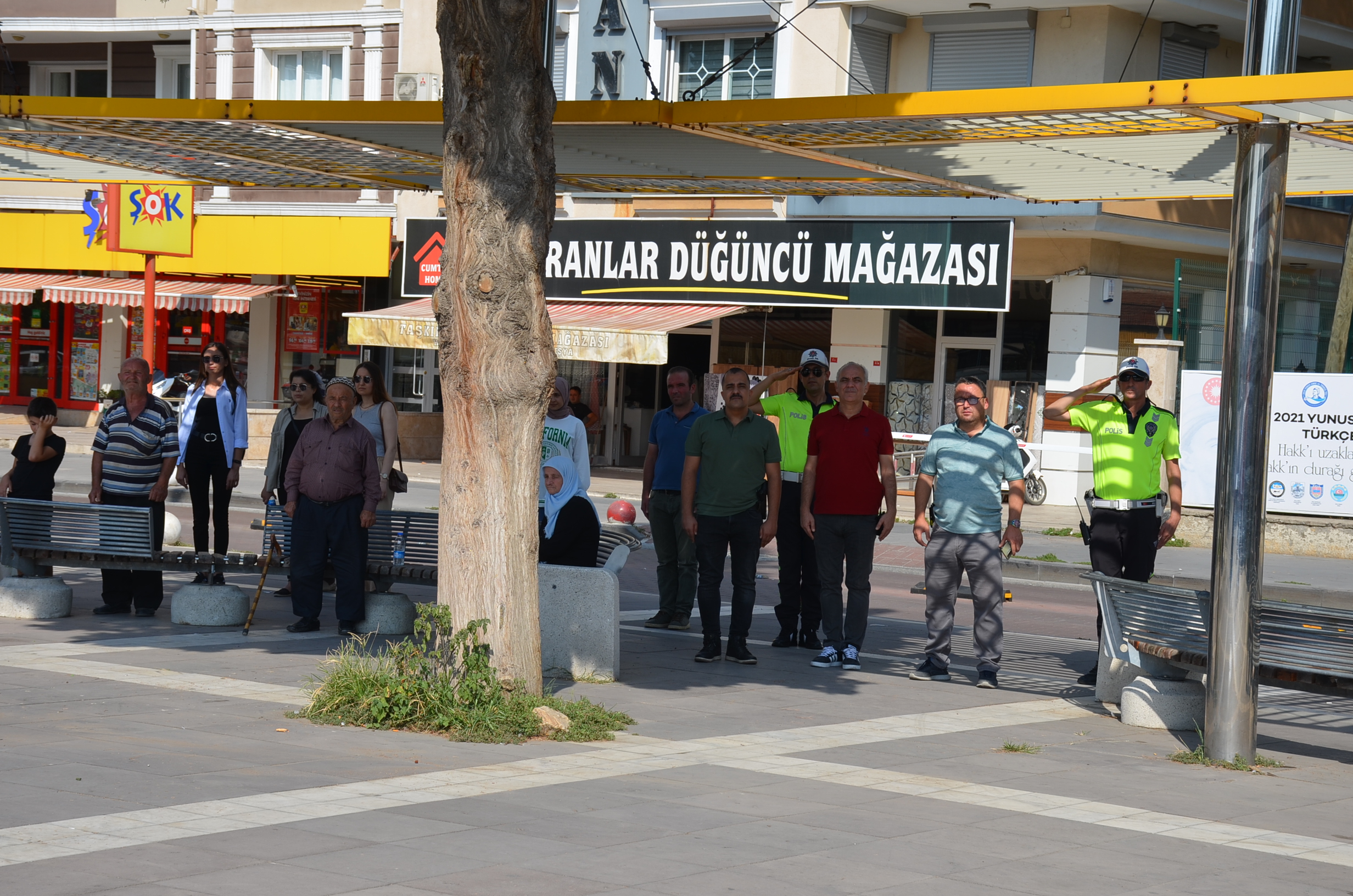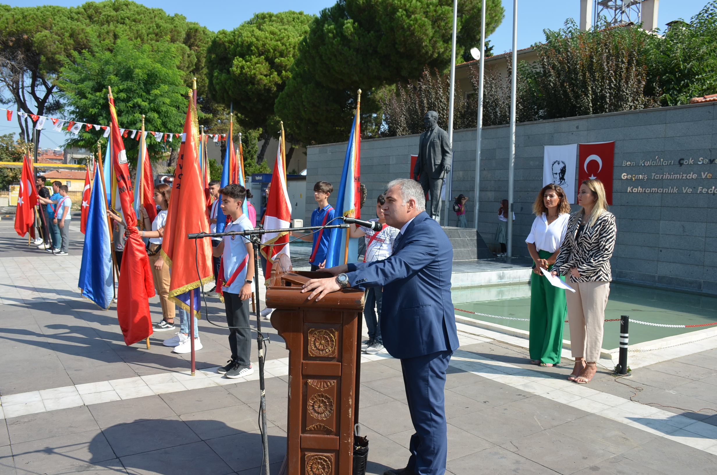 Kaymakamlık ve Belediye Başkanlığı çelenklerinin sunulması sonrasında Atatürk, silah arkadaşları, tüm şehit ve gaziler için 1 dakikalık saygı duruşu ve akabinde İstiklal marşı okundu.