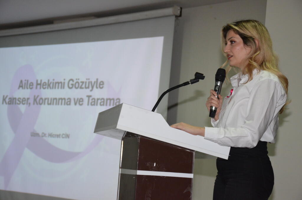Kültür Merkezi’ndeki toplantıda, kanserin dünya genelindeki yayılımı ve önlenebilir bir hastalık olduğu uzman görüşleriyle aktarıldı. Öğrencilerin yoğun katılım gösterdiği programda, Dr. Adanır’ın sunumuyla genç nesillerin de bu konuda bilinçlenmesi sağlandı.
