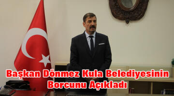 Başkan Dönmez Kula Belediyesinin Borcunu Açıkladı Kula Belediye Başkanı Hikmet Dönmez Kula Belediyesinin borçlarını açıkladı. Başkan Dönmez sosyal medya hesabından yaptığı açıklamada Kula Belediyesini...
