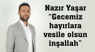 Yaşar “Gecemiz hayırlara vesile olsun inşallah” Zaferiye Mahallesi Muhtar Adayı Nazır Yaşar Miraç Kalndili münasebetiyle mesaj yayımladı. Yaşar “Peygamber Efendimizin mucizelerinden olan Miraç,...