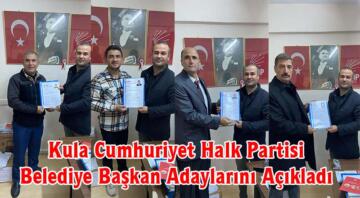 Kula Cumhuriyet Halk Partisi Belediye Başkan Adaylarını Açıkladı Cumhuriyet Halk Partisi Kula İlce Başkanı Kadir Girgin 31 Mart 2024 tarihinde yapılacak olan mahalli idareler seçimlerinde partilerinde...