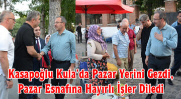 Kasapoğlu Kula’da Pazar Yerini Gezdi, Esnafa Hayırlı İşler Diledi Eski Gençlik ve Spor Bakanı İzmir Milletvekili Dr. Mehmet Muharrem Kasapoğlu bir dizi incelemelerde bulunmak için Kula’ya geldi. Kasap...