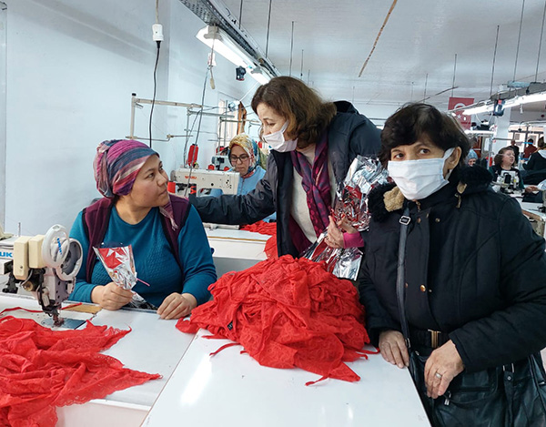 Başkan Osman Kasırga ve partililer basın açıklamasından sonra tekstil fabrikasında çalışan bayanlara ve Kula Belediyesinde çalışan bayanlara karanfil dağıtarak çalışanların kadınlar gününü kutladı.