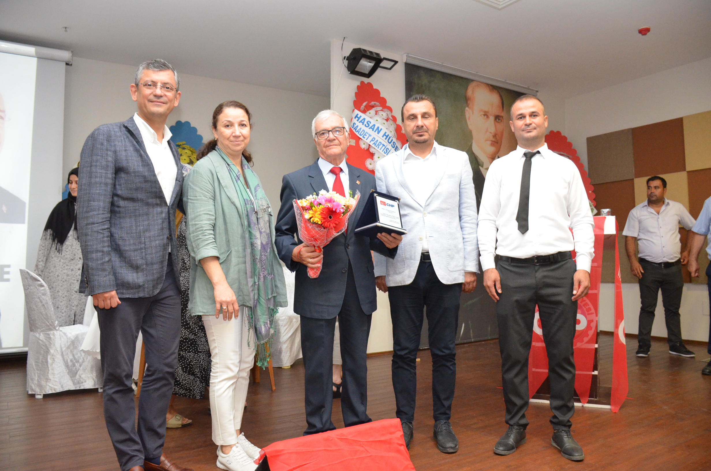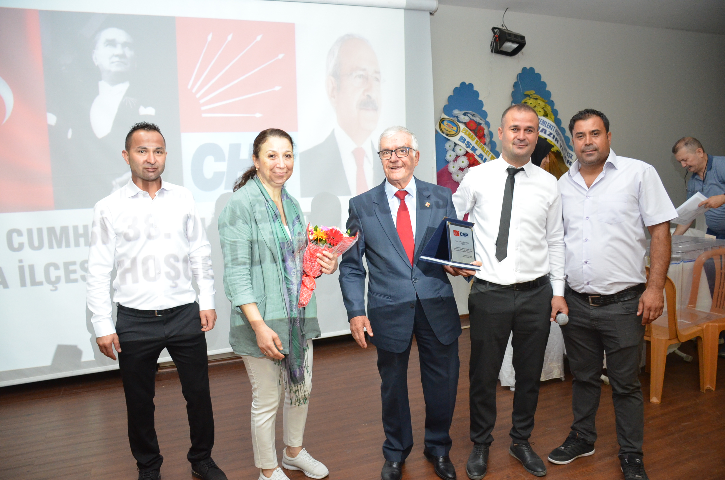 Görevi devreden Osman Kasırga’ya kongre sonunda Başkan Kadir Girgin yapmış olduğu hizmetler için teşekkür plaketi verirken CHP Kula Kadın Kolları Başkanı Esen Çınar ise çiçek vererek teşekkürlerini iletti.