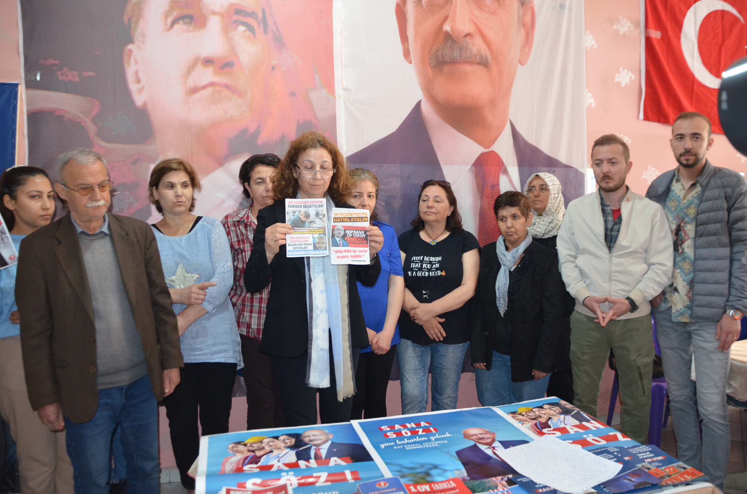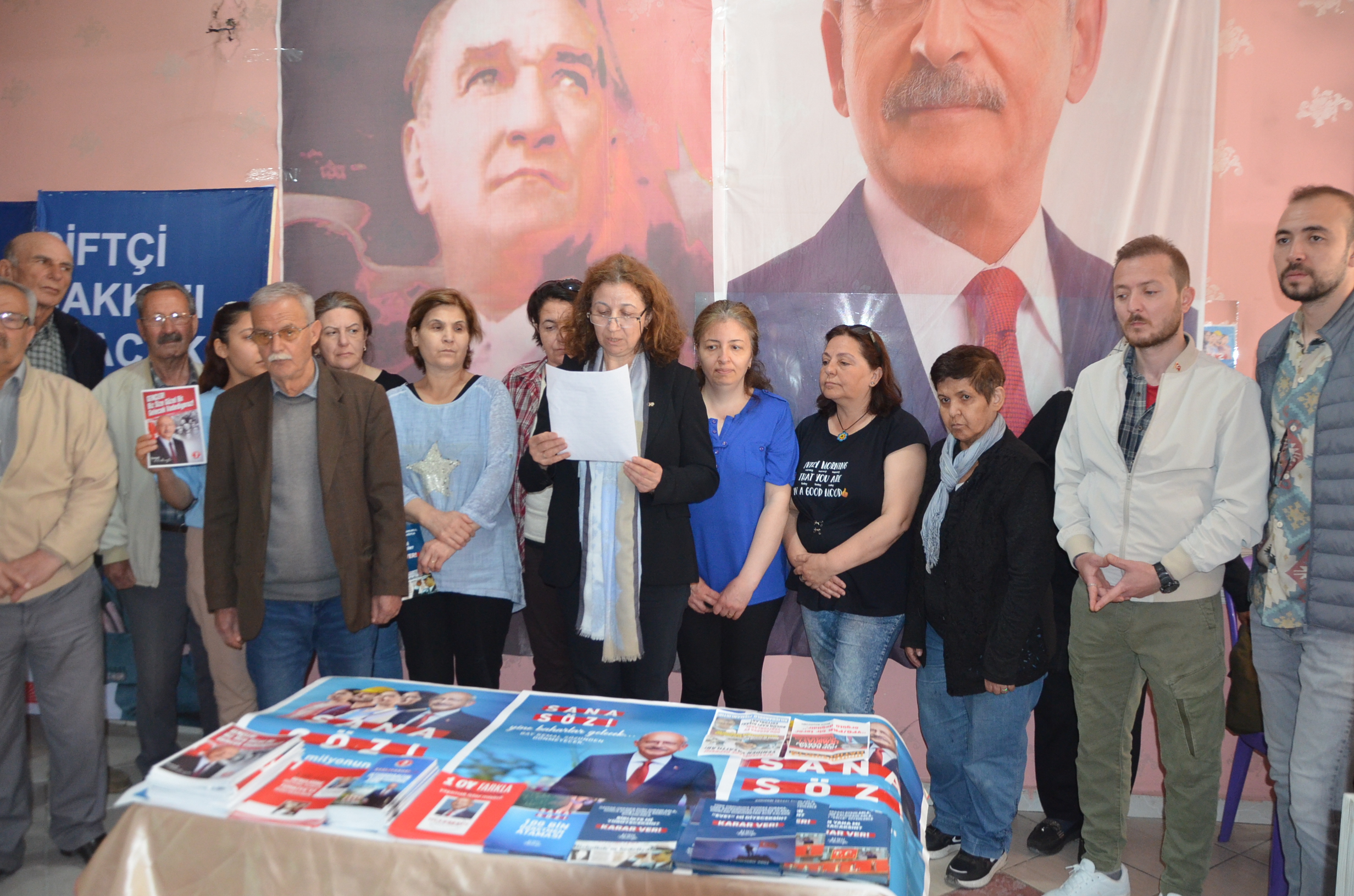 Cumhuriyet Halk Partisi Kula İlçe Kadın Kolları Başkanı Esen Çınar 25 Mayıs gecesi Kula’da dağıtılan el broşürleri hakkında bugün CHP seçim bürosunda basın açıklaması yaptı. CHP Kula İlçe Teşkilatı yöneticilerinin katıldığı basın toplantısında dağıtılan el broşürleri kınandı.