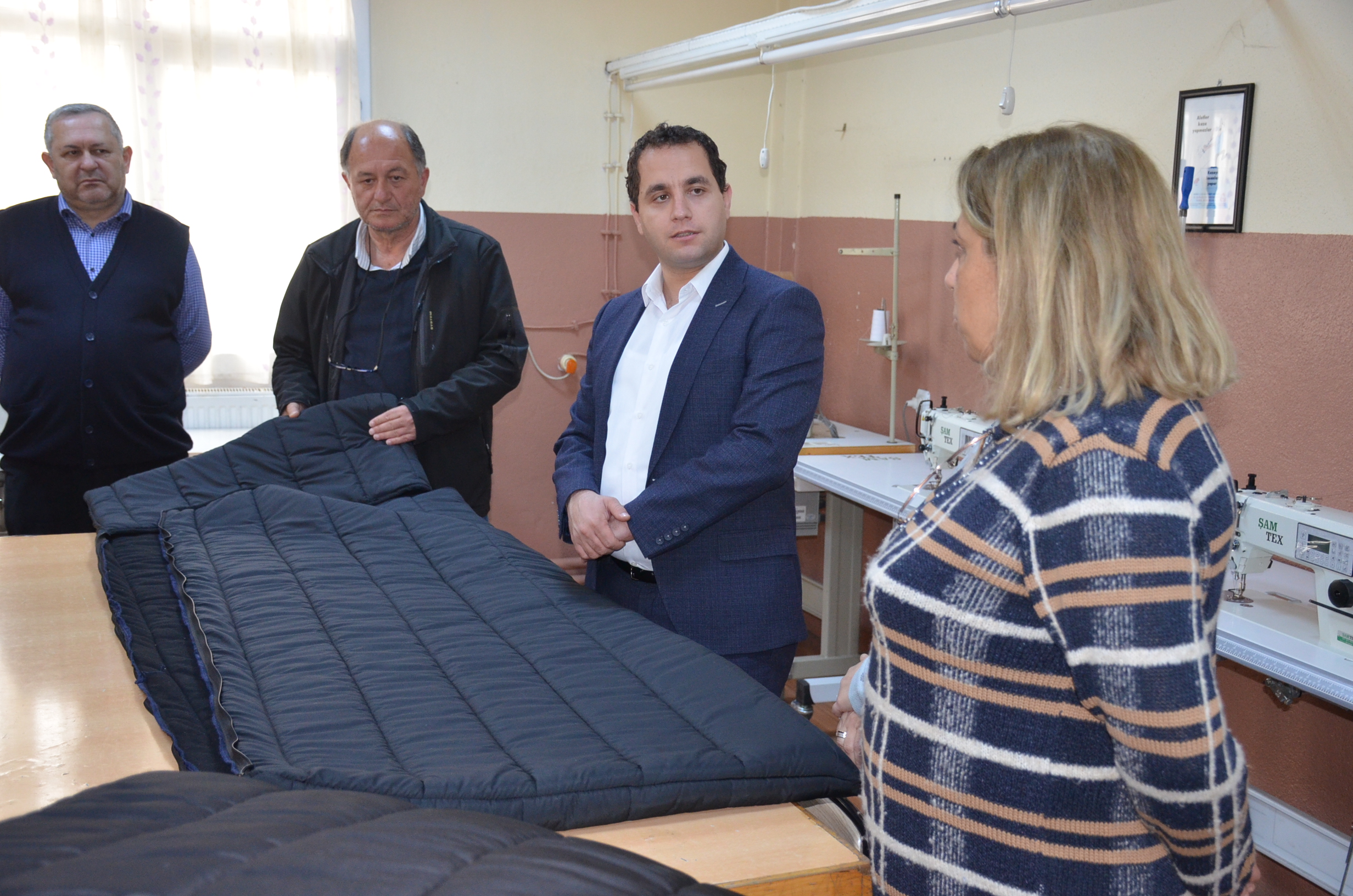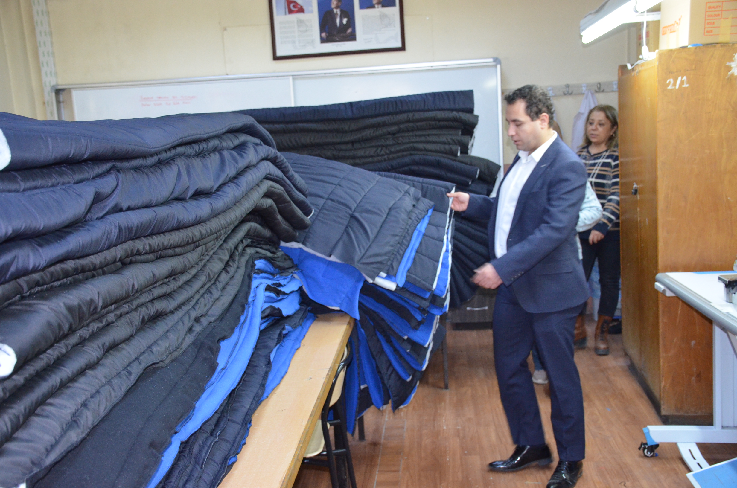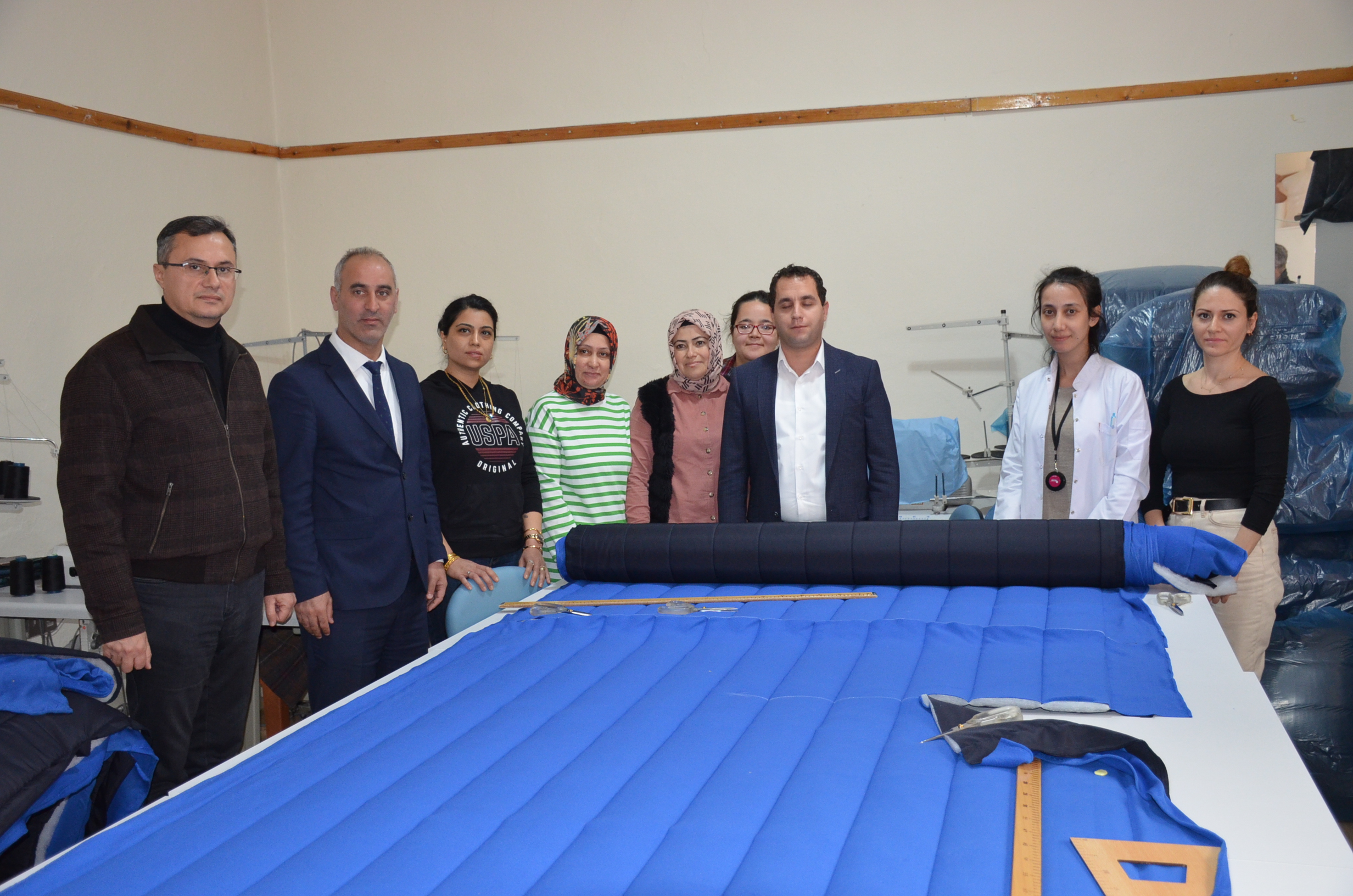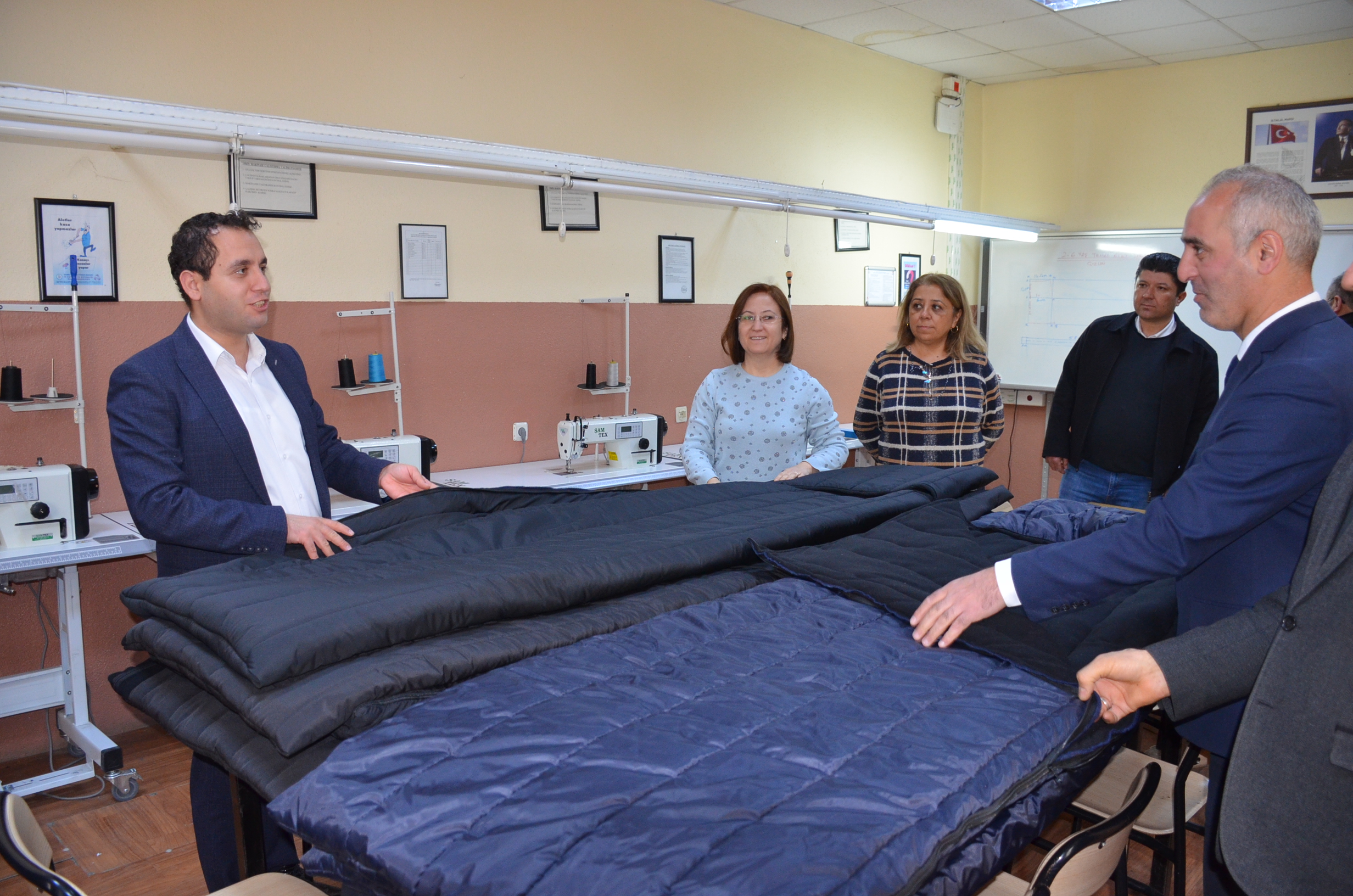 Dikimlerin devam ettiği Hacı Ömer Özboyacı Mesleki ve Teknik Anadolu Lisesi ve Kula Halk Eğitim Merkezi’ni ziyaret eden Kula Kaymakamı Birkan Tatlısöz tulumların en kısa sürede deprem bölgelerine gönderileceğini söyledi.