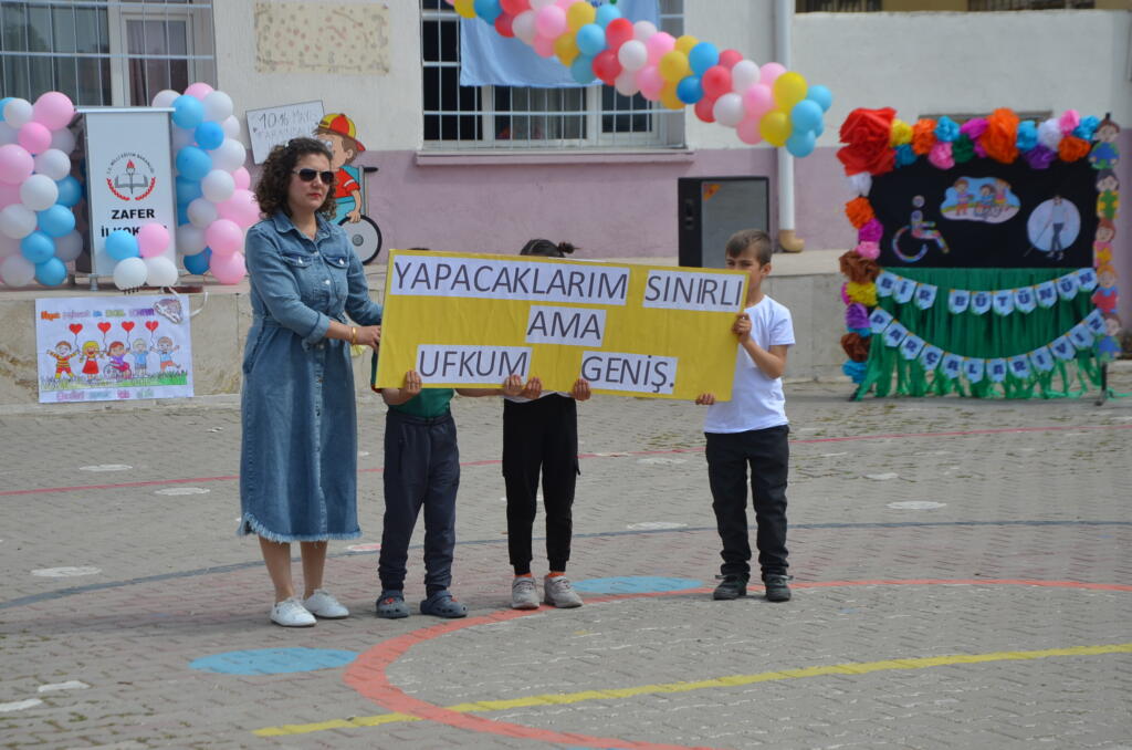 Zafer İlkokulu bahçesinde düzenlenen program saygı duruşu ve İstiklal Marşının okunmasıyla başladı. Günün anlam ve önemini belirten konuşmayı Özel Eğitim öğretmeni yaptı, öğrencilerin hazırlamış olduğu şiirlerin okunması, dans gösterileri, halk oyunu gösterileri ile devam etti.