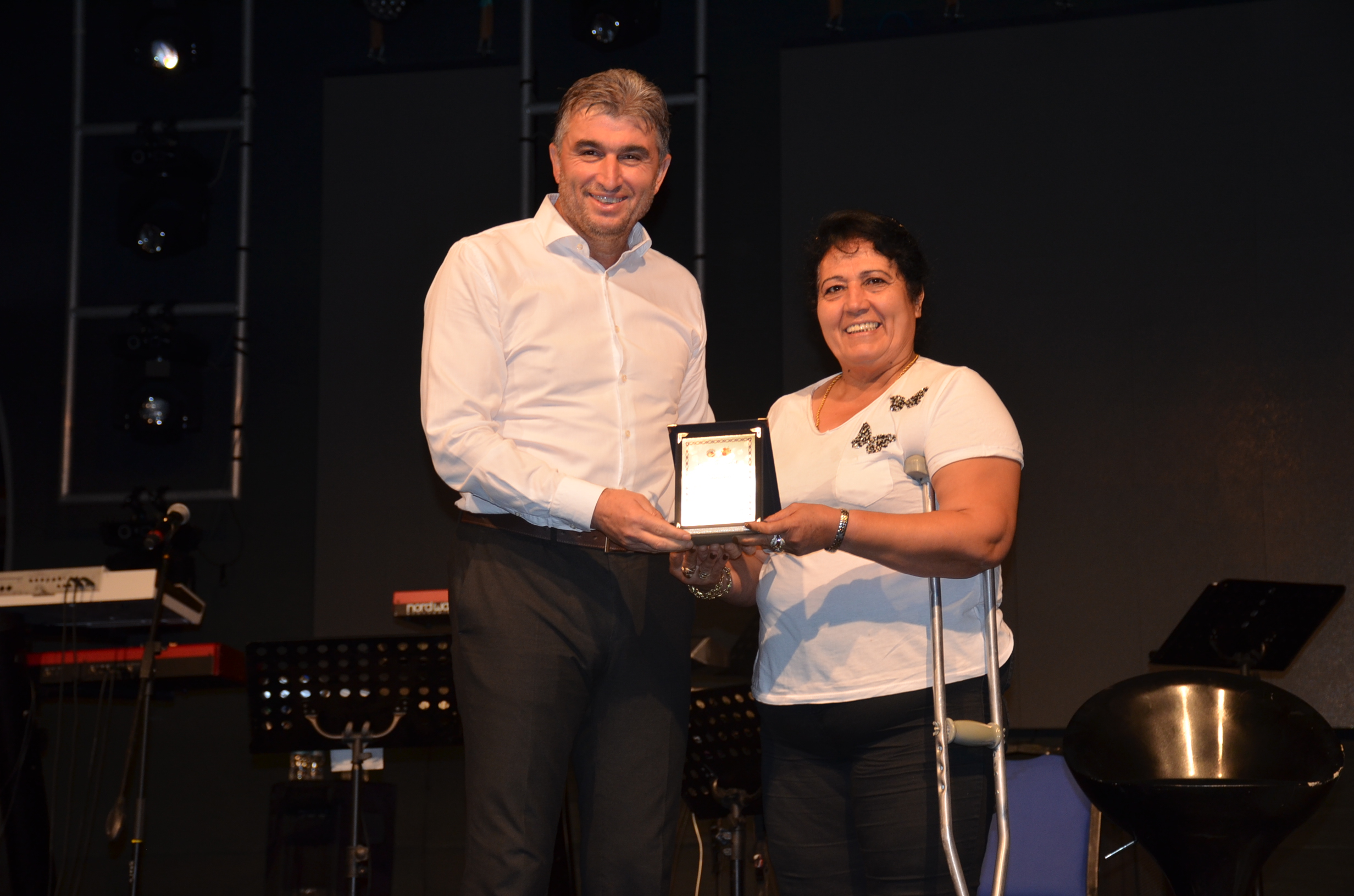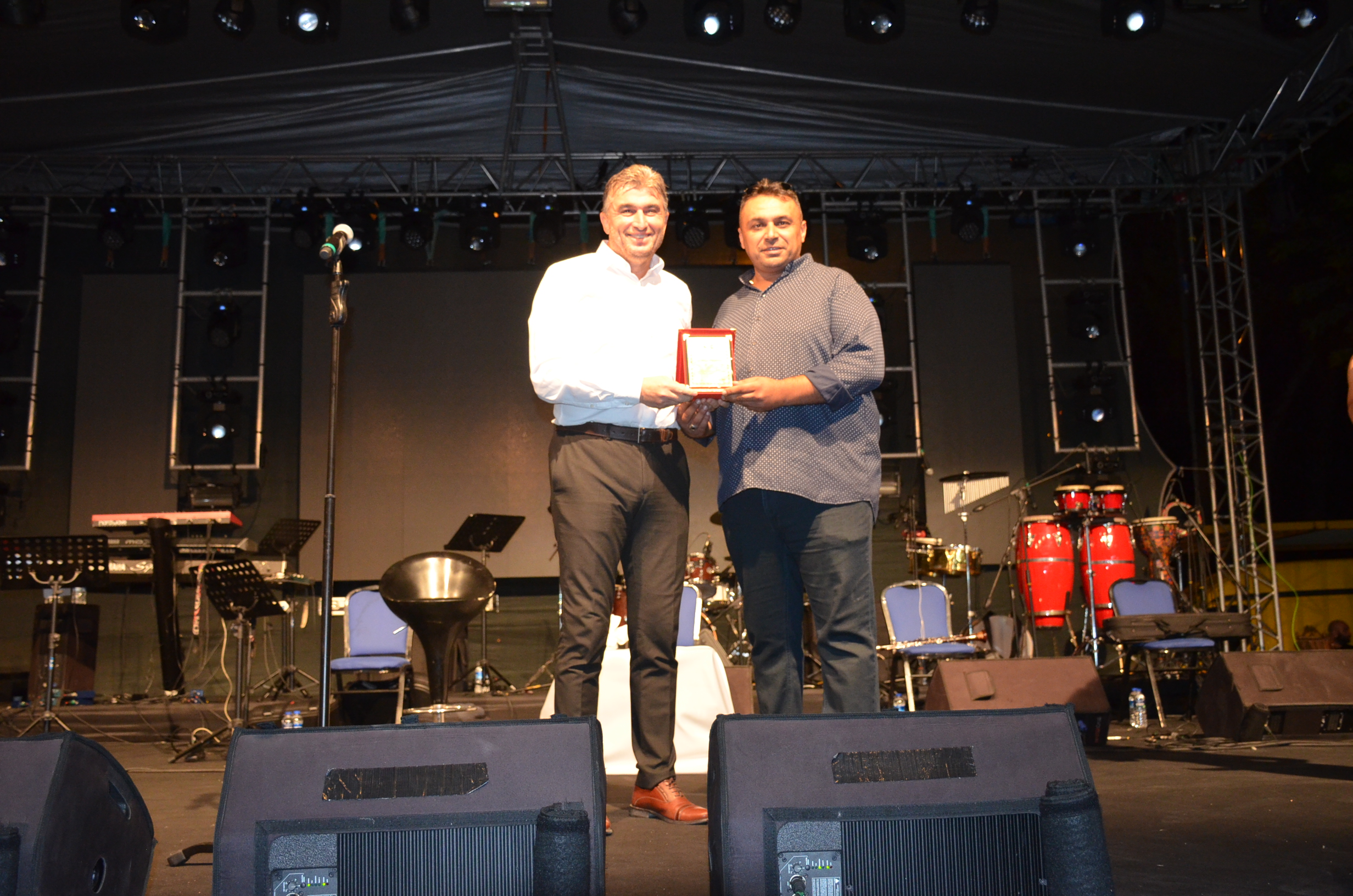 Konser’de Kula Kaymakam Birkan Tatlısöz ve Belediye Başkanı Hüseyin Tosun, festival hatırası olarak Mustafa Ceceli’ye çiçek ve maket Kula Evi hediye etti.