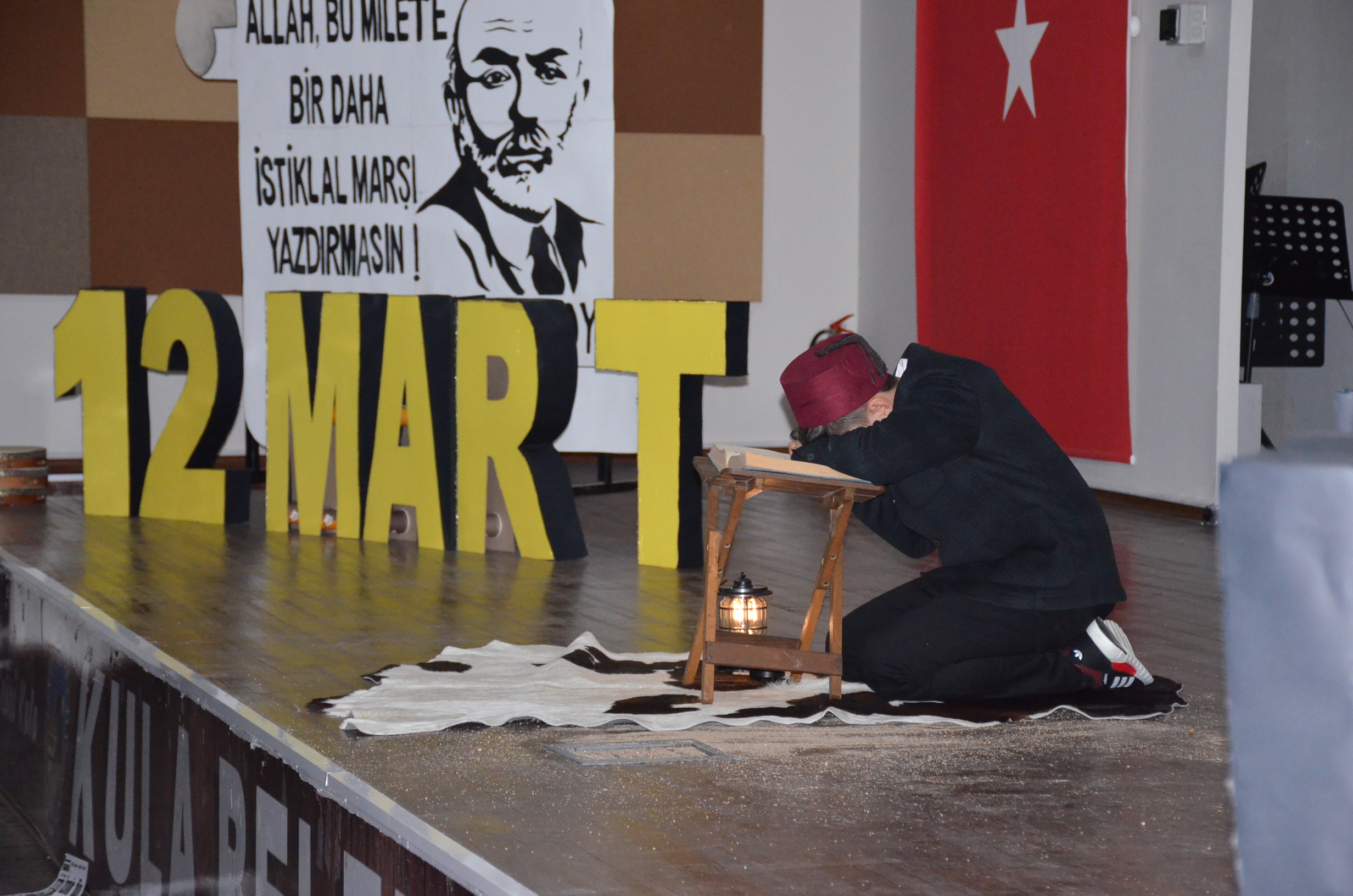 Tören, İstiklal Marşı’nın okunması, Kur’an-ı Kerim tilaveti, öğretmen ve öğrencilerinin hazırladığı oratoryo, şiir gösterisi gerçekleşti. Kula Kaymakamı Ömer Ahmet Özdemir, günün anlamı ve önemine değinen konuşmasıyla salonda bulunan protokol ve öğrencilere hitap ederek bağımsızlığın önemini vurguladı.