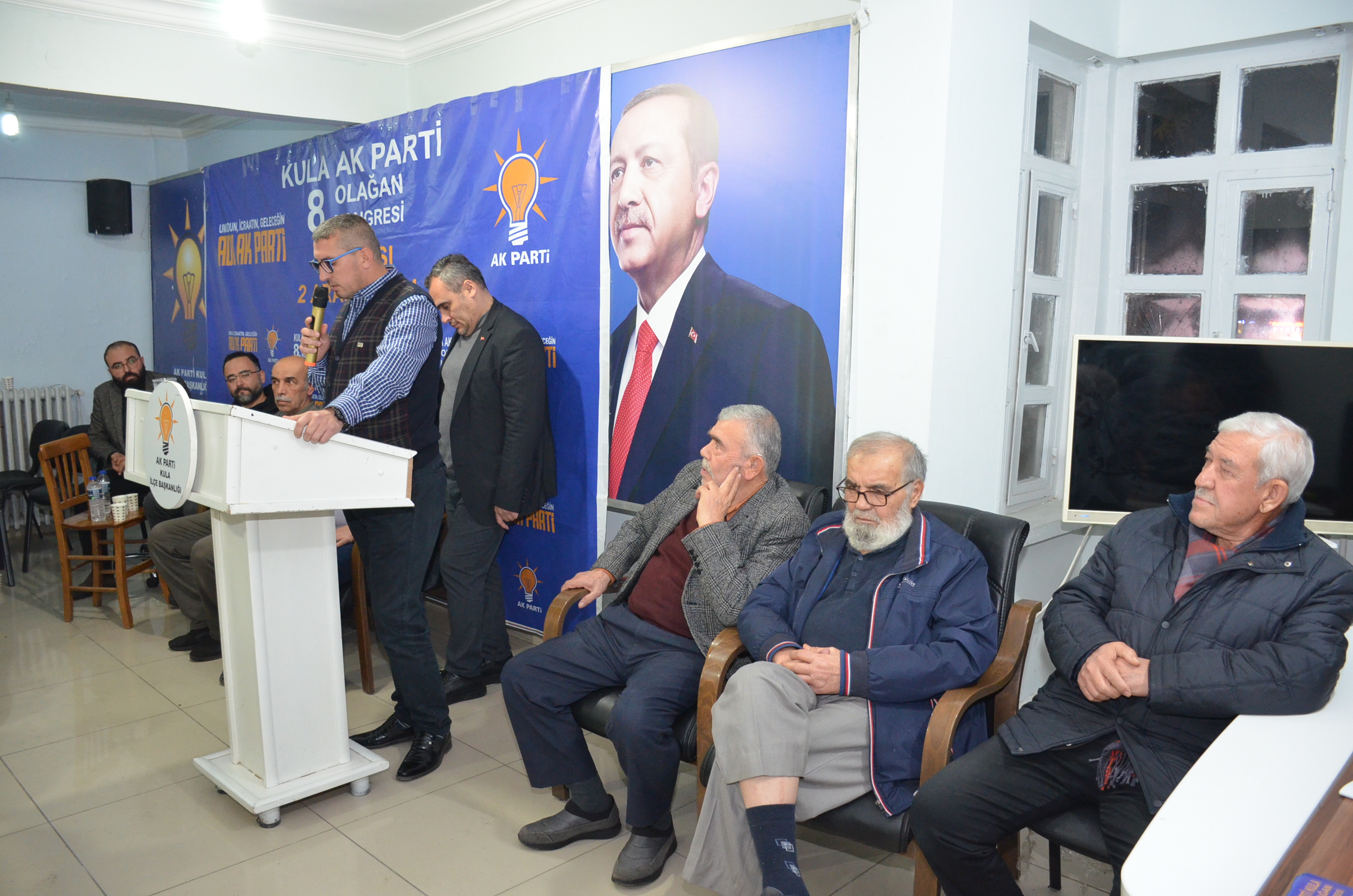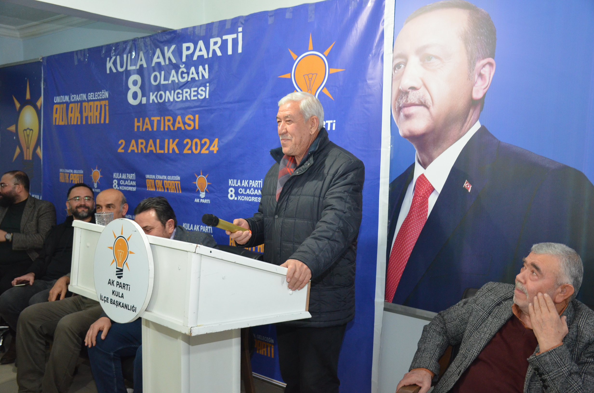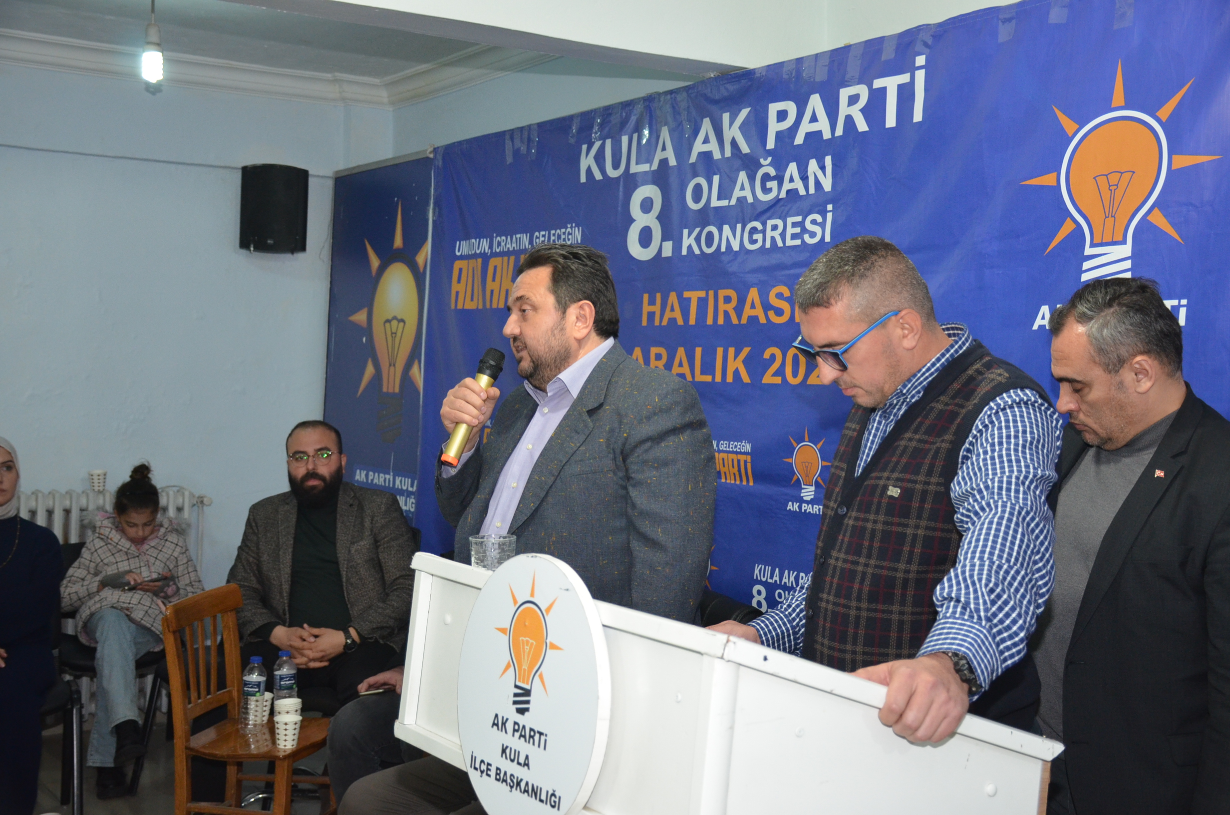 Başkanlar 8. Olağan kongrede mevcut Başkan Nejat Gülmez ile yola devam etme kararı aldıklarını belirttiler. Kula Ak Parti ilçe Başkanlığına aday olan Nejat Gülmez de yaptığı açıklamada bugüne kadar Ak Parti ye destek veren herkese teşekkür etti. Gülmez mart ayında yapılan yerel seçimlerde bir yol kazası yaşadık bu kazanın telafisinin mümkün olduğunu yapılacak ilk seçimlerde kula belediyesini siz partili dostlarımızla birlikte geri alarak Ak Parti bayrağını belediyemizde yeniden dalgalandıracağız dedi.
