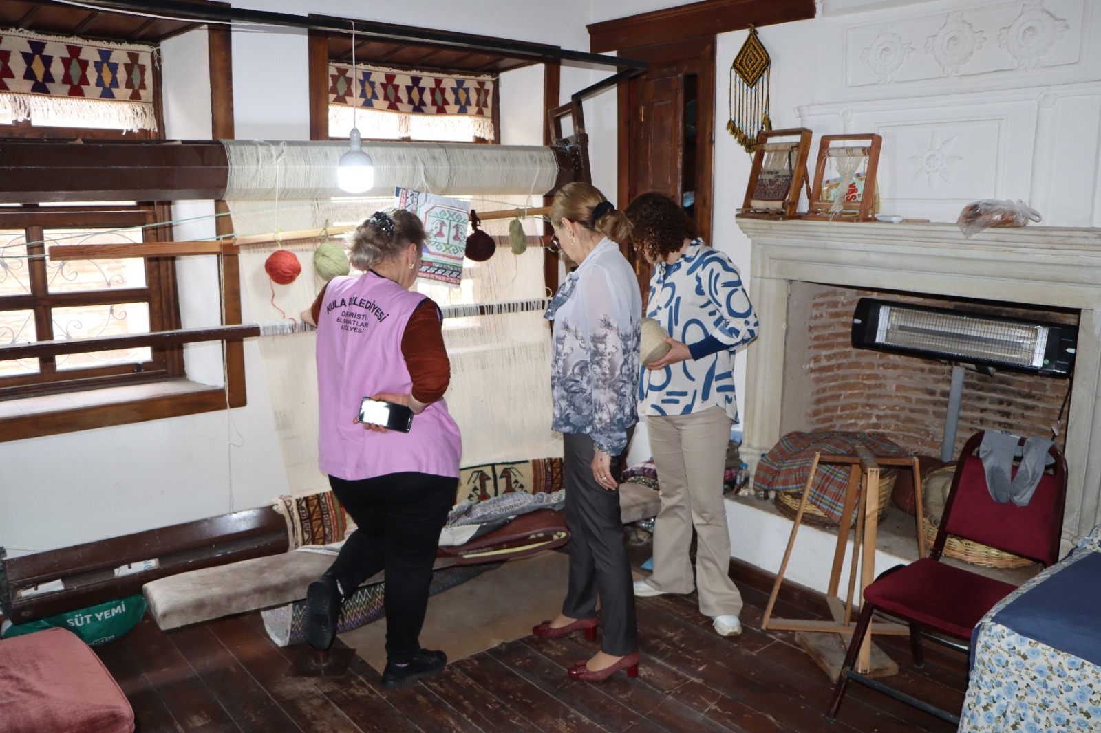 Kula Belediyesi tarafından hayata geçirilen, Dr. Aristi El Sanatları Atölyesi, Kestaneciler Konağı (Türk Evi) ve Hanım Eli Derneğinde yapılan çalışmalar hakkında Emine Tosun ve Belediye Kültür ve Sosyal İşler Müdürü Yeliz Ay Hırka’dan bilgi aldı.