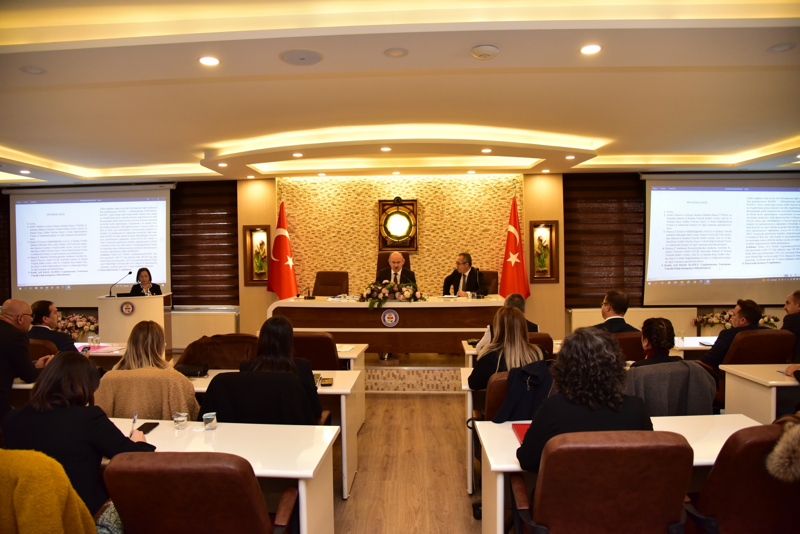 Aile ve Sosyal Hizmetler İl Müdürlüğü, İl Emniyet Müdürlüğü, İl Jandarma Komutanlığı’nın kadına yönelik şiddetle mücadele kapsamında gerçekleştirdikleri faaliyetler hakkında birer sunum yaptıkları toplantı, katılımcıların kadına yönelik şiddetle mücadelede etkili olabilecek çözüm önerileri ve değerlendirmeleriyle sona erdi.