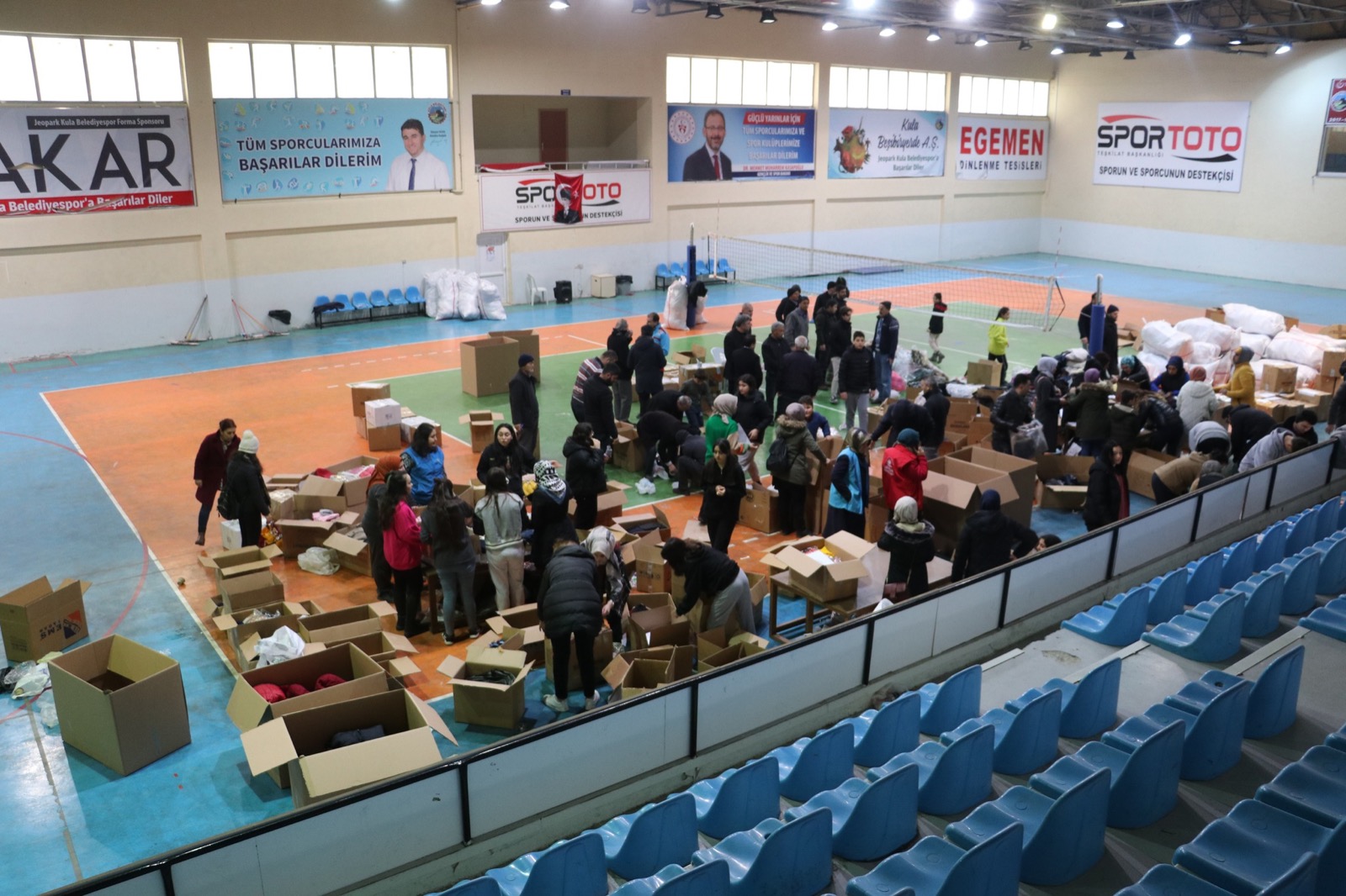 Kula ilçesinde vatandaşlar, AFAD koordinesinde Kula Kaymakamlığınca depremden etkilenen vatandaşlar için düzenlenen yardım kampanyasına desteklerini sürdürüyor.