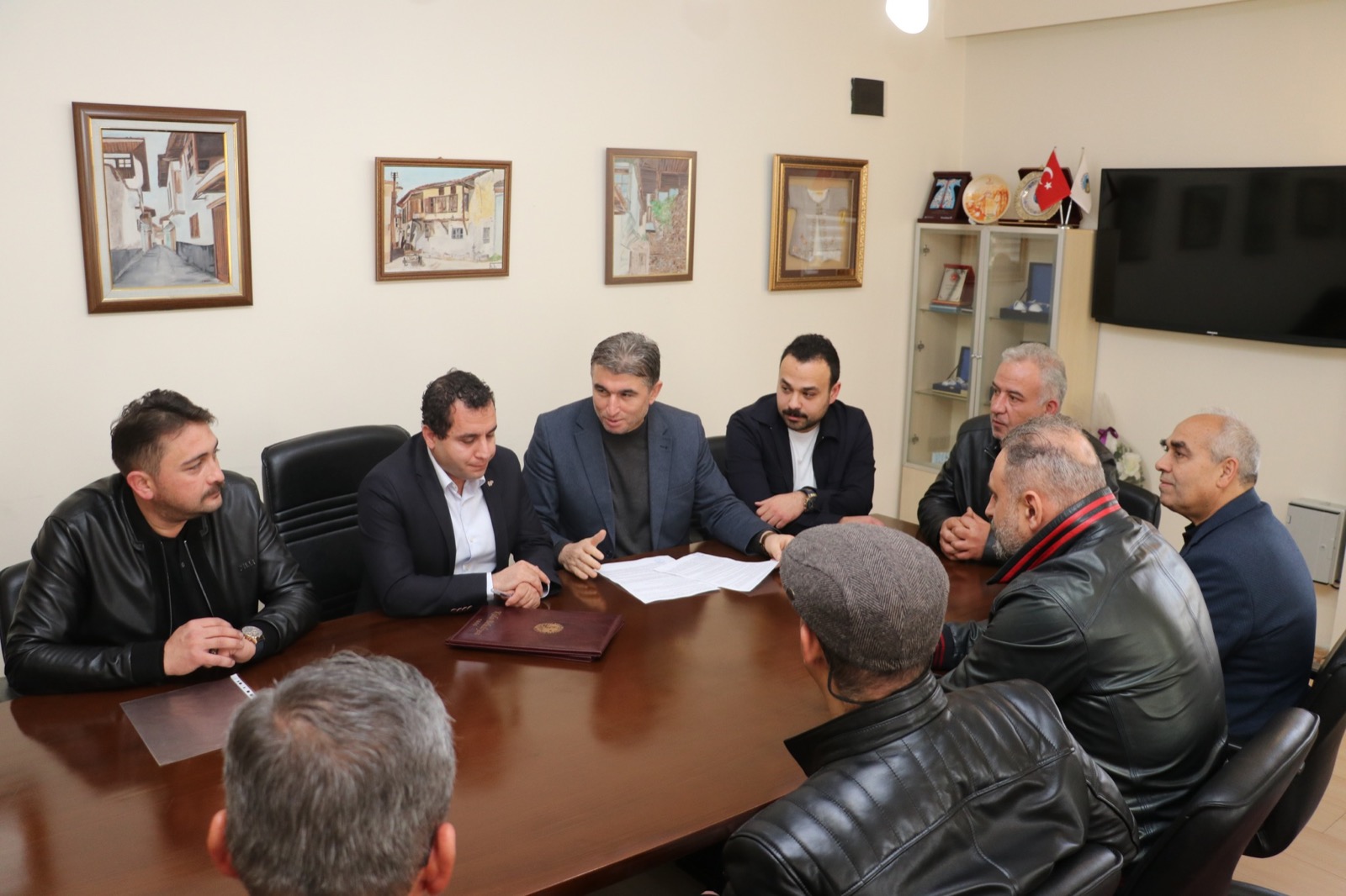 Kula Belediyesi Başkanlık makamında gerçekleşen toplantıya, Kaymamam Birkan Tatlısöz, Kula Deri İhtisas ve Karma OSB Yönetim Kurulu Başkanı ve Belediye Başkanı Hüseyin Tosun, Kula OSB Bölge Müdürü Vesile Tuncel, S.S. Dericiler İhtisas Sanayi Sitesi Kooperatifi Başkanı Ahmet Karahan, Başkan Yardımcısı İsmail Atatoprak ve yönetim kurulu üyeleri İbrahim Kilimci, Mustafa Ekin, Ahmet Dinçsoy, Kooperatif sekreteri İrfan Şahin ile yüklenici firma yetkilisi Yasin Sandallıoğlu katıldı.
