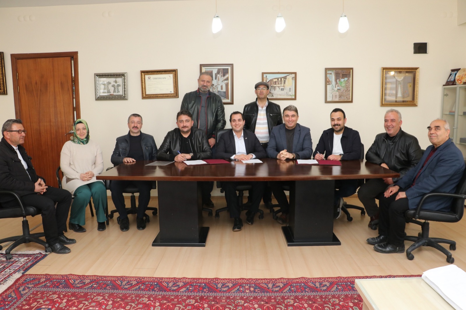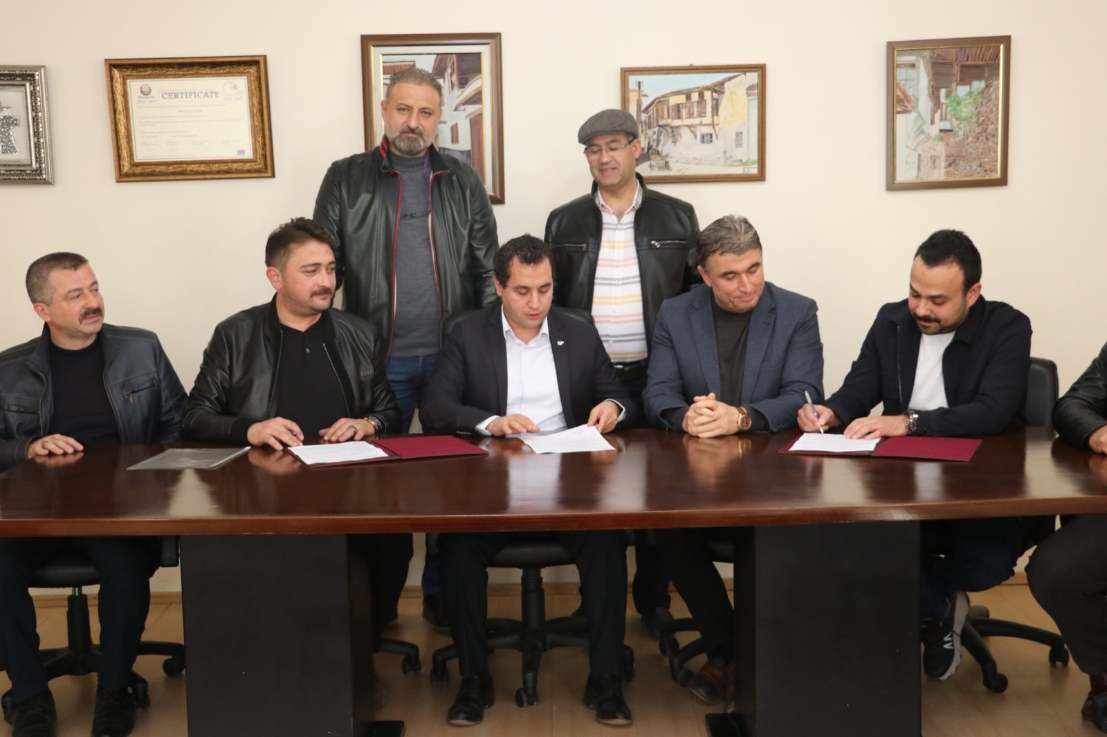 Kula Karma ve Deri İhtisas Organize Sanayi Bölgesi içerisinde kurulacak S.S. Kula Dericiler İhtisas Sanayi Sitesi’nin hafriyat altyapı çalışları için imzalar atıldı.