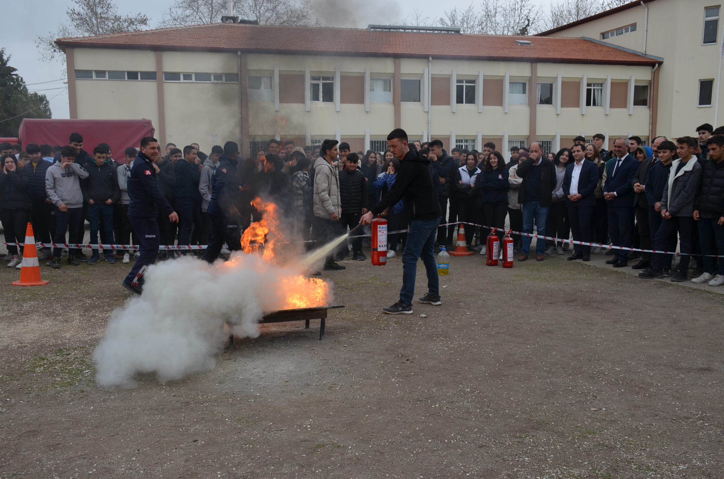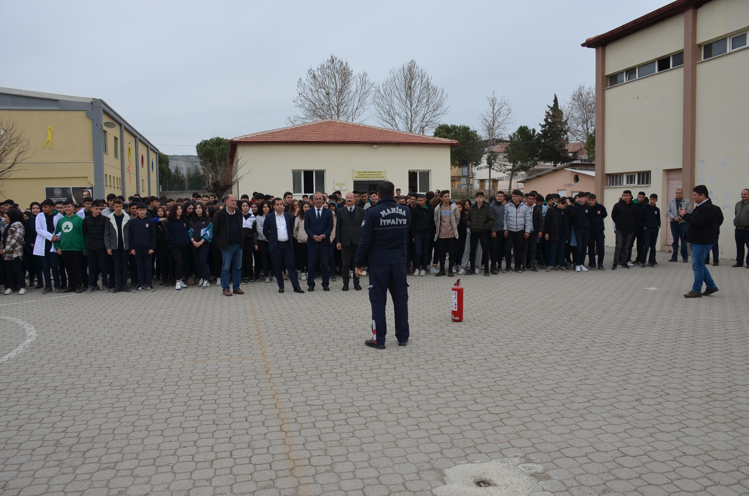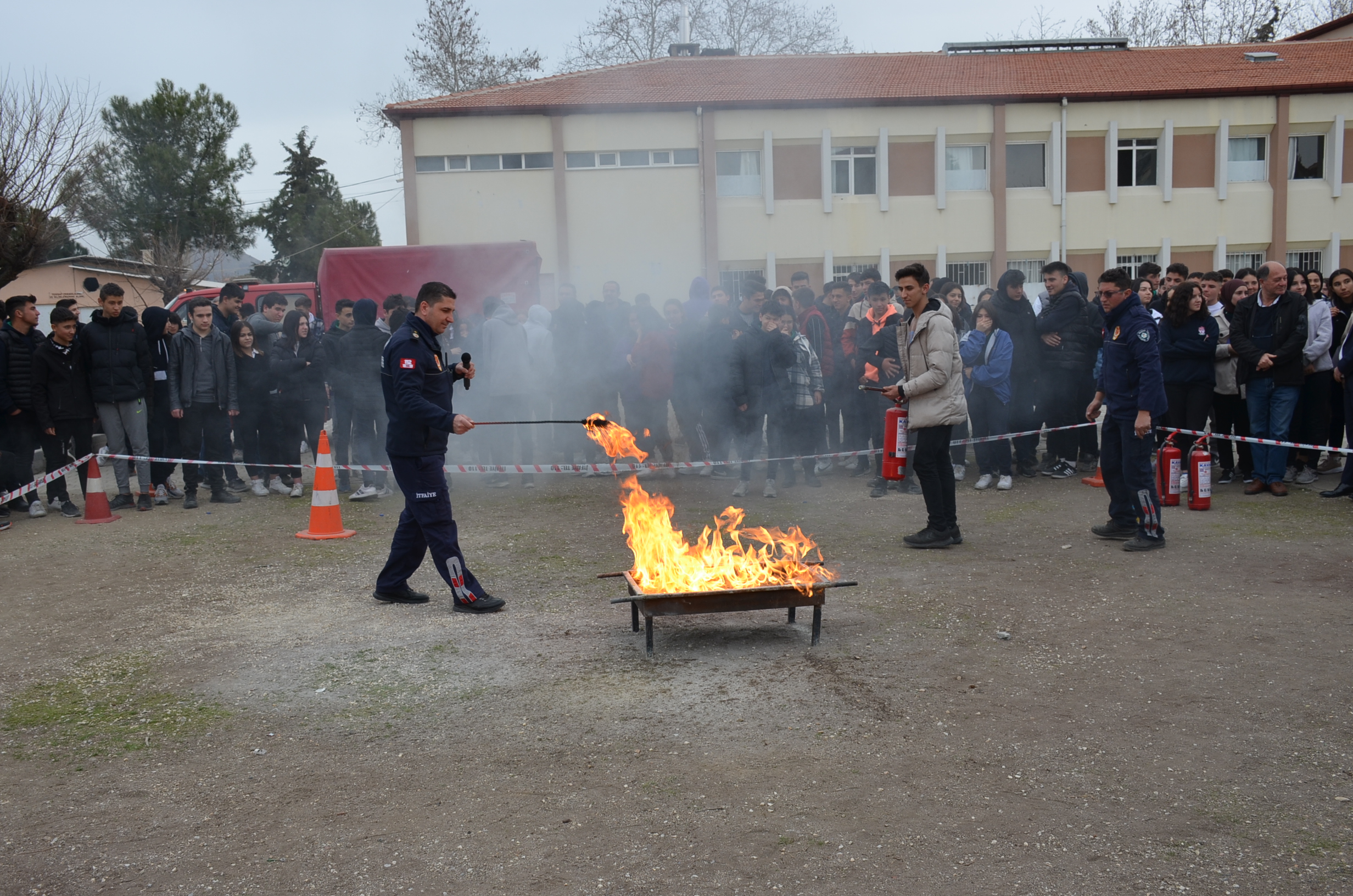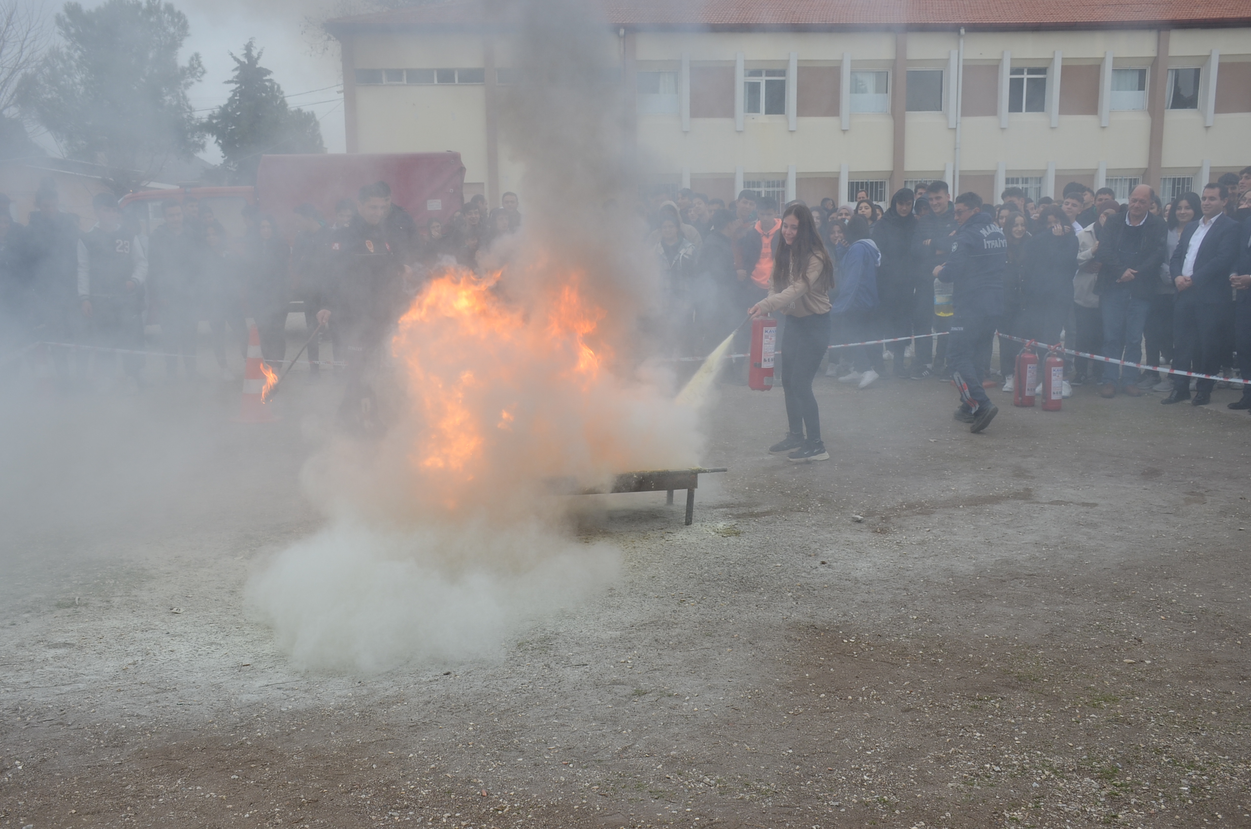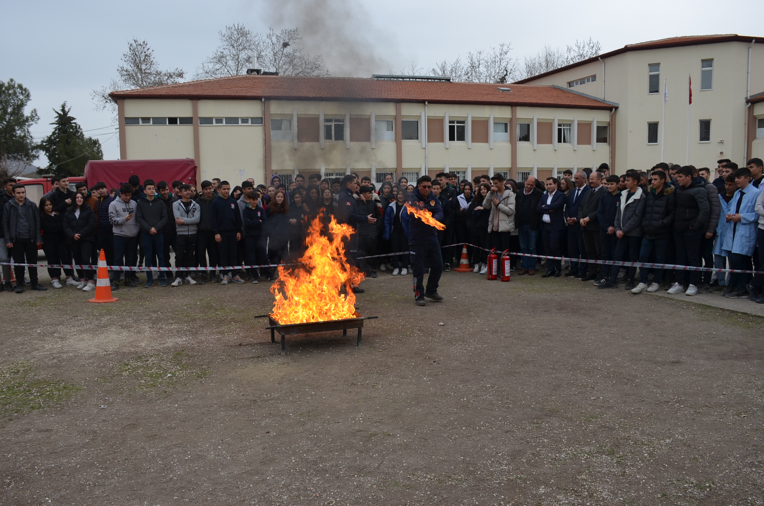 Manisa Büyükşehir İtfaiye amirliği eşliğinde yapılan tatbikata Kula Kaymakamı Birkan Tatlısöz de katıldı. Okulda yangın alarmlarının çalmasıyla öğrenciler okul bahçesinde toplanırken İtfaiye amiri öğrencilere yangın ve deprem hakkında kısa bilgiler verdi, bilgilerin ardından öğrenciler yangın söndürme tüpleriyle uygulamalı olarak ateşe müdahale ettiler.