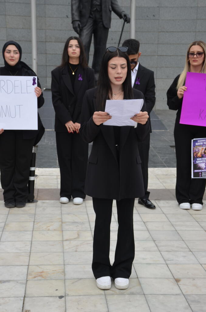Bugün burada, kadına yönelik şiddete dikkat çekmek ve farkındalık oluşturmak amacıyla bir araya geldik. Kadına şiddet yalnızca bireysel bir sorun değil, toplumun tamamını etkileyen ciddi bir insan hakları ihlalidir. Her gün birçok kadın, farklı türlerde şiddete maruz kalmakta ve çoğu zaman sessiz kalmak zorunda bırakılmaktadır.
