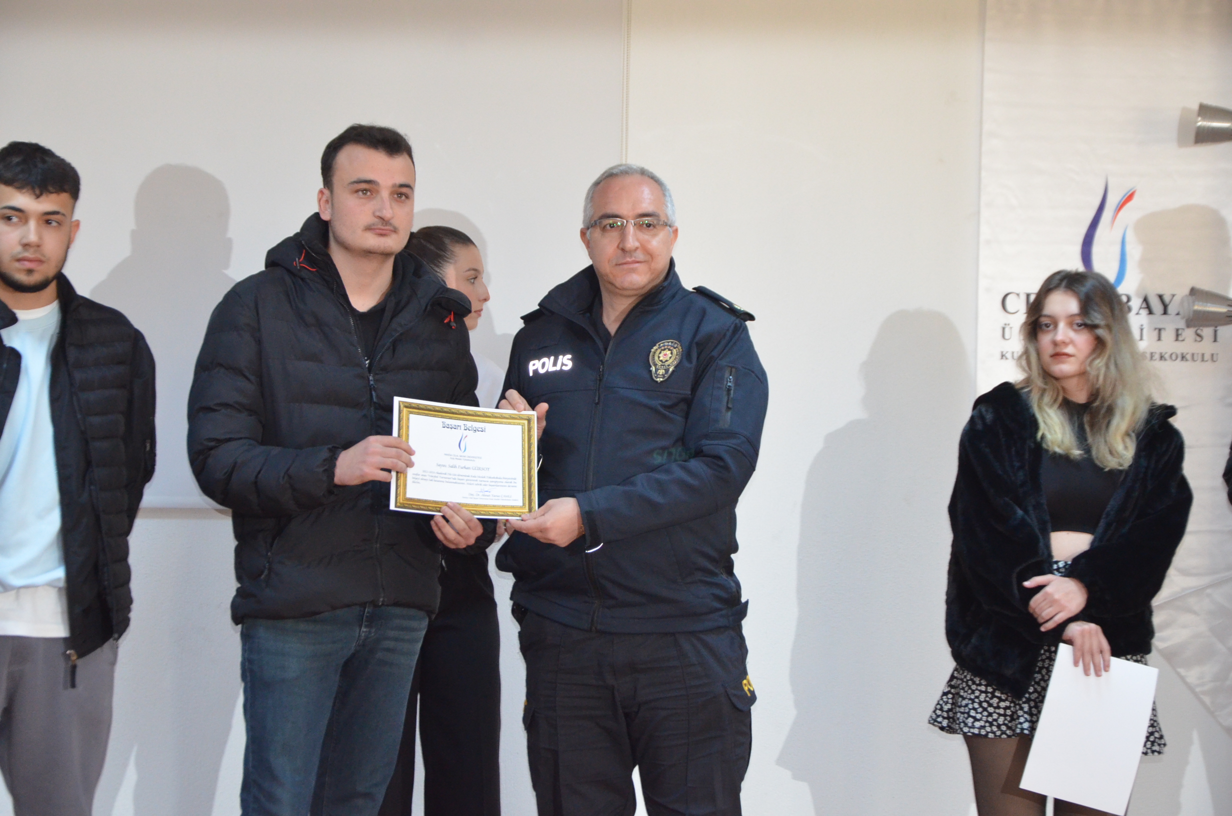 Yarışma, Meslek Yüksekokulu Sekreter Vekili Hasan Ali Şahin’in sunumuyla çevrimiçi olarak gerçekleştirildi. 35 soruluk yarışmada ilk 10’da dereceye giren öğrencilere ödülleri takdim edildi. Yarışma birincisi Şevket Kuru’ya ödüllerini Meslek Yüksekokulu Müdürü Doç. Dr. Ahmet Yavuz Çamlı verdi. Bununla birlikte Türkiye çapında gerçekleştirilen fidan dikimi etkinliğine katılan, okul voleybol turnuvasında birinci olan, okuldaki peyzaj düzenlemelerinde gönüllü görev alan ve okulun faaliyetlerinde yönetime yardımcı olan öğrencilere teşekkür ve başarı belgeleri Kula protokolü tarafından verildi.