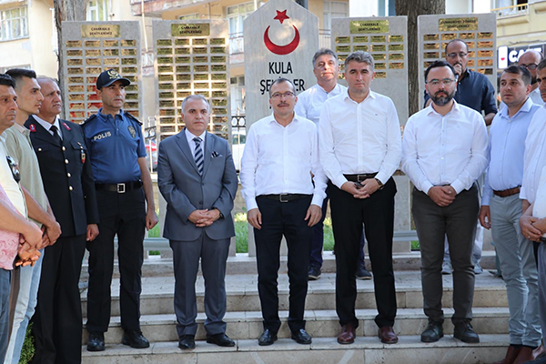 Kula protokolü, bayramlaşma programı öncesinde ilçe mezarlığında kabir ziyareti yapan vatandaşlarla bir araya gelerek bayramlarını tebrik etti. Mezarlık ziyaretinin ardından 15 Temmuz Şehitler Parkı’nda düzenlenen bayramlaşma programında buluştu. İlçe Protokolü buradaki bayramlaşma töreninden sonra, İlçe Şehitliği, İlçe Emniyet Müdürlüğü, İlçe Jandarma Komutanlığı, Kula Devlet Hastanesi ve Bölge Trafik Denetleme İstasyon Amirliği ve Kula İtfaiye Amirliğini ziyaret ederek buralardaki kamu görevlileri, hastalar ve hasta yakınları ve vatandaşlarla bayramlaştı.