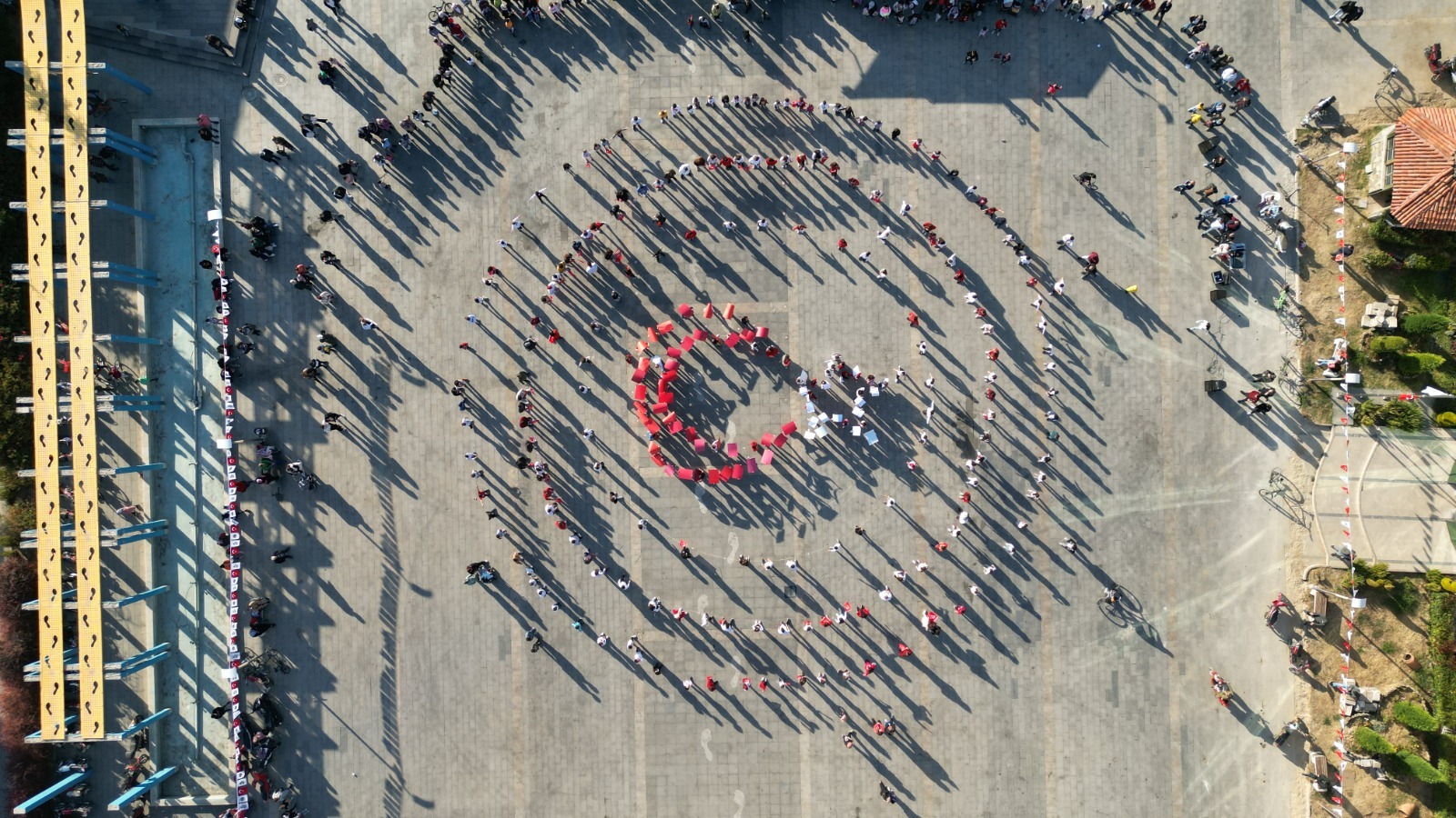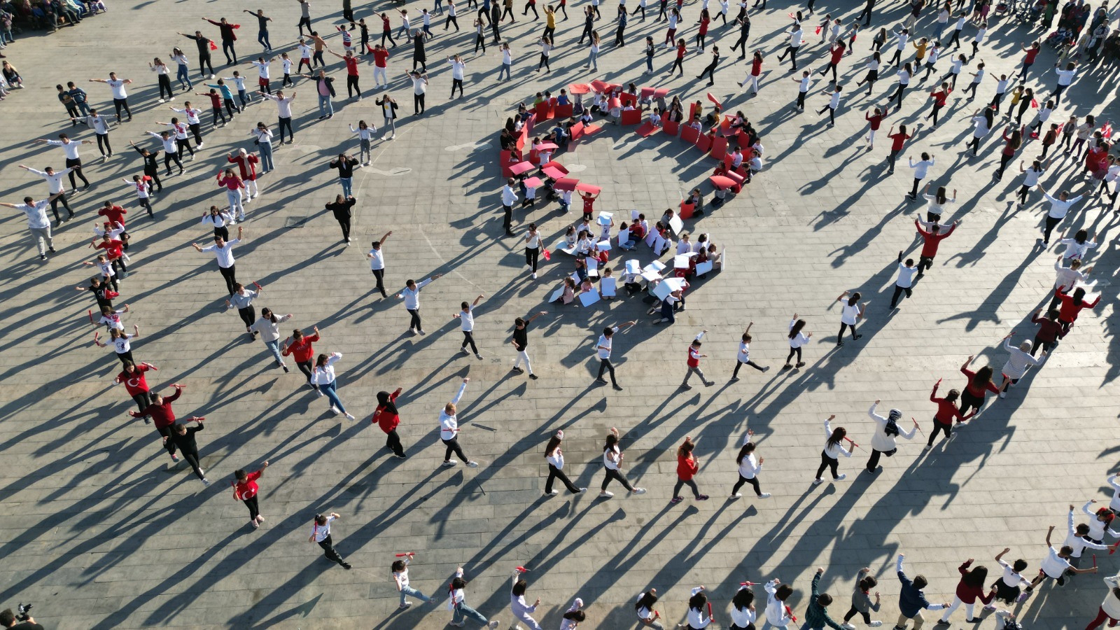 Cumhuriyetin 99. yıl dönümü kutlamaları kapsamında düzenlenen organizasyona katılan yaklaşık 300 kişi zeybek oynayarak, toplu performans sergiledi.