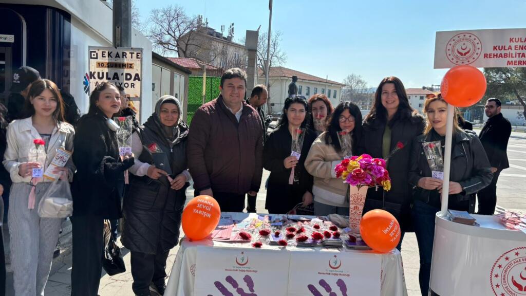 KULA – Manisa’nın Kula ilçesinde 8 Mart Dünya Kadınlar Günü, farkındalık yaratan bir etkinlikle kutlandı. Kula 80. Yıl Rehabilitasyon Müdürlüğü, İlçe Emniyet Müdürlüğü, İlçe Jandarma Komutanlığı ve İlçe Sağlık Müdürlüğü’nün ortaklaşa koordine ettiği “Kadına Şiddete Hayır ve KADES” tanıtım standı, ilçe merkezinde vatandaşların yoğun ilgisiyle açıldı.