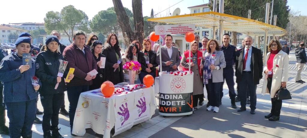 Kula’da 8 Mart Dünya Kadınlar Günü dolayısıyla düzenlenen etkinliklerde, ilçedeki kamu kurumları el ele vererek KADES uygulamasını tanıttı. Kaymakam Talha Altuntaş’ın da katıldığı etkinlikte kadınlara karanfil dağıtılarak “şiddete hayır” mesajı verildi.