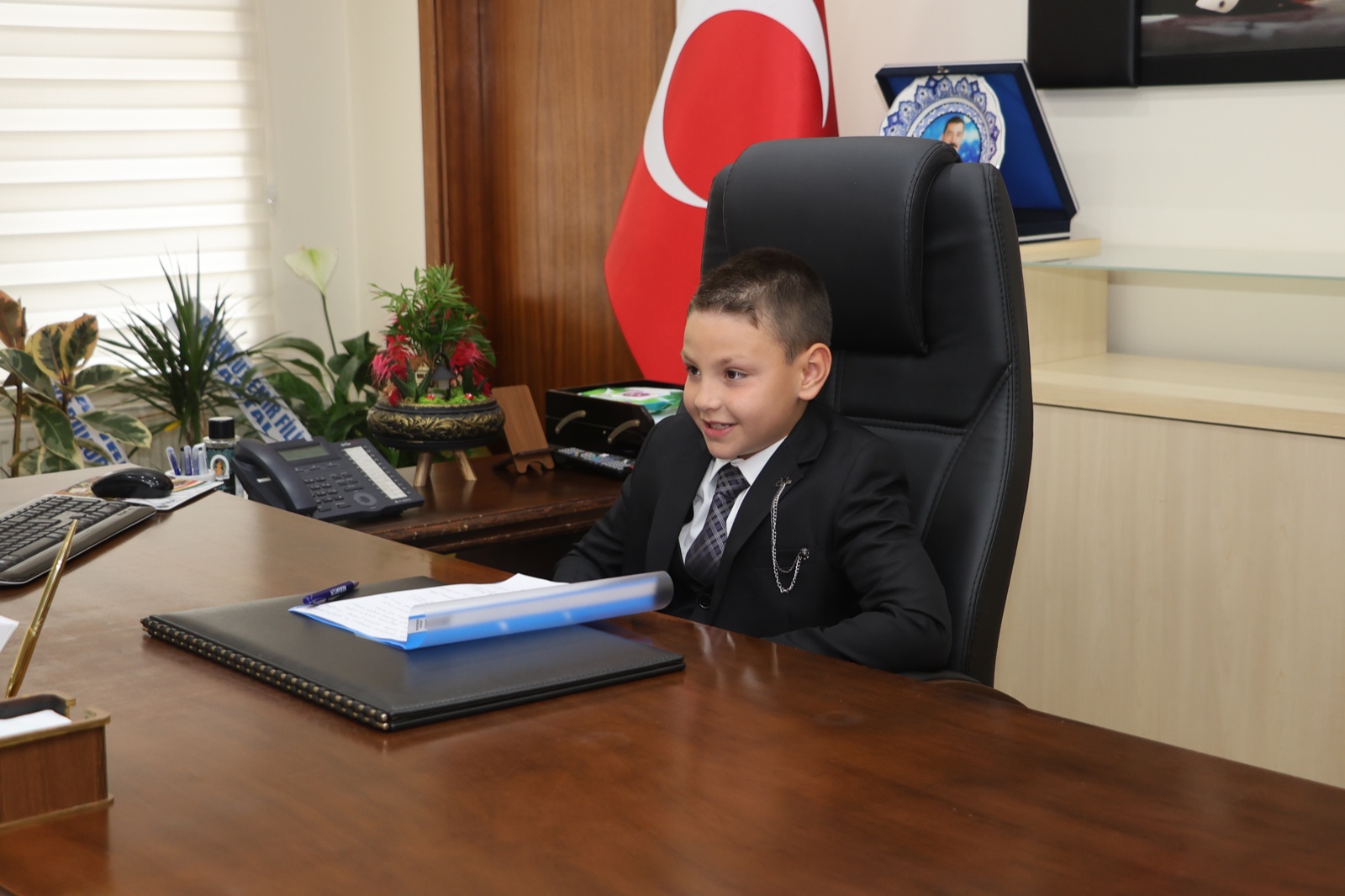 Kula’da Çocuk Belediye Başkanı Ege Kaan, Makam Koltuğuna Oturdu