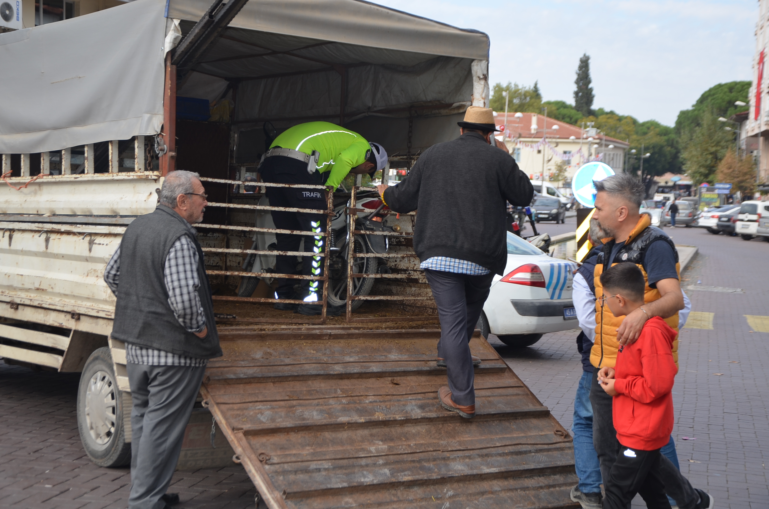 Ekipler öncelikle motosiklet kullanıcılarını kask kullanımı konusunda bilgilendirirken kaskını takmayan sürücülere de cezai işlem uyguladı.